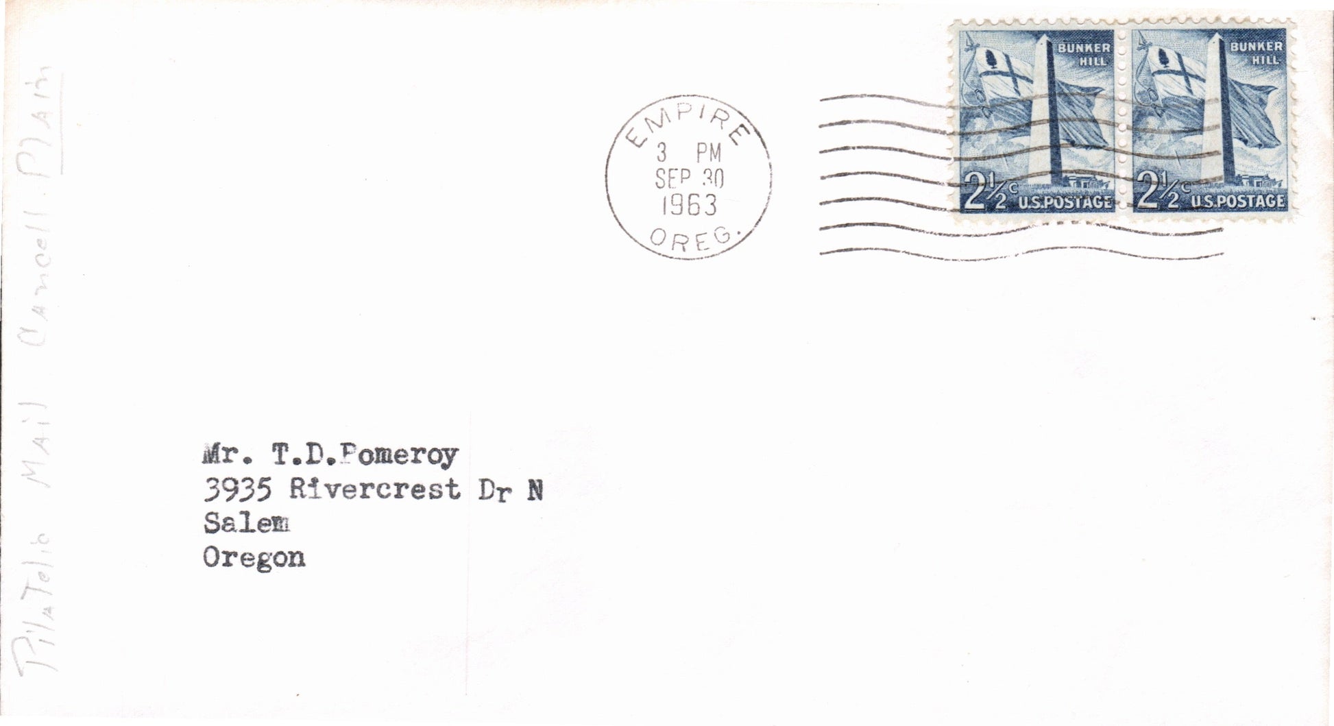 Bunker Hill RB (Coos Bay) (1945-1949) 1947 4-bar on cover