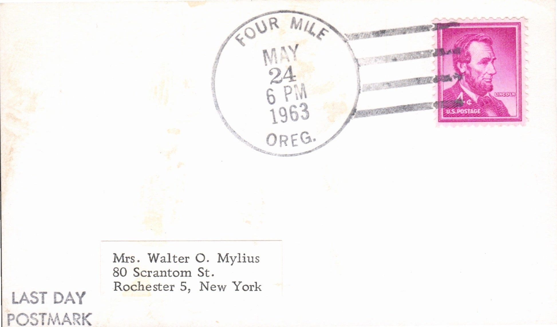 Four Mile (1947-1963) 1947 4-bar on Postal Card; 1963 4-bar on 3x5 card