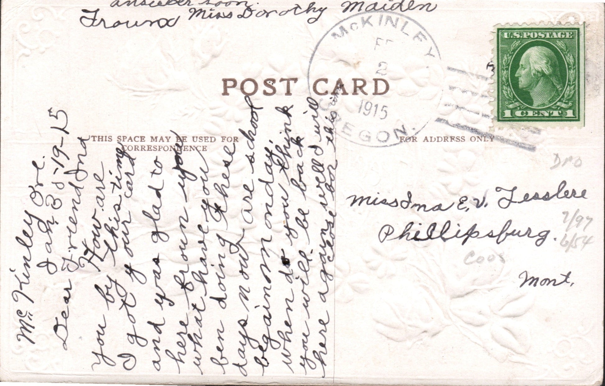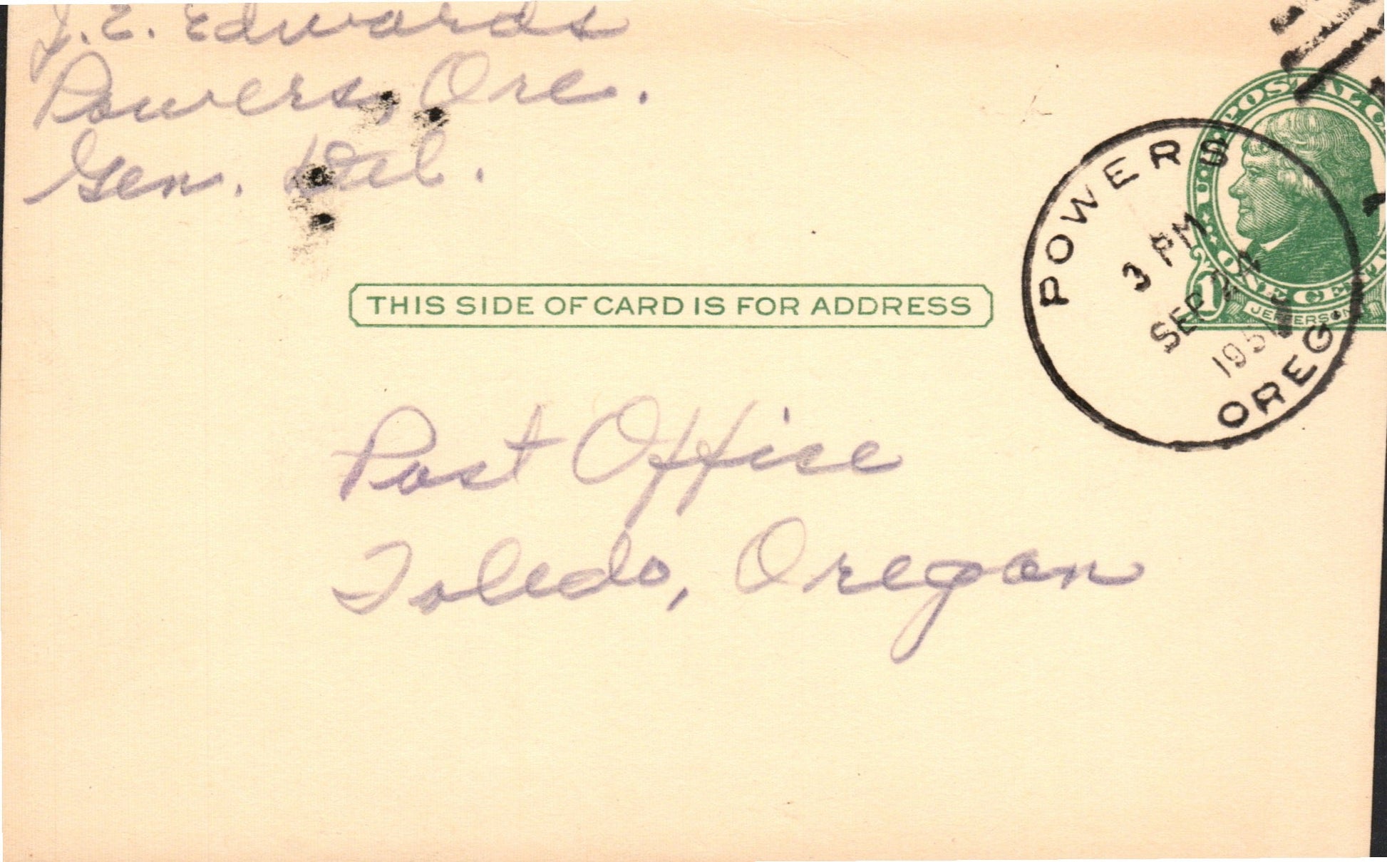 Myrtle Point 1906 duplex on cover;1943 machine cancel on Postal Card, hole punch