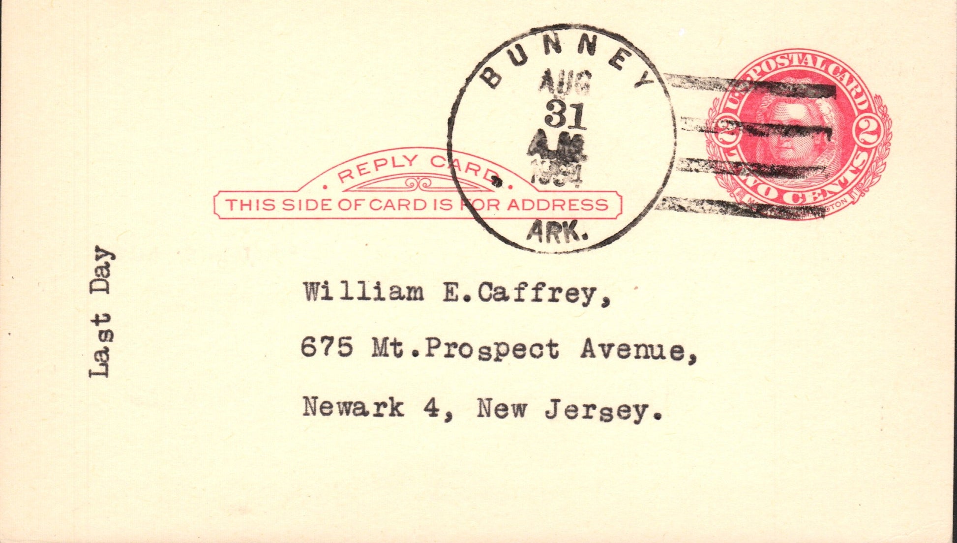 Bunney (1919-1954) 1954 4-bar on LD Postal Card