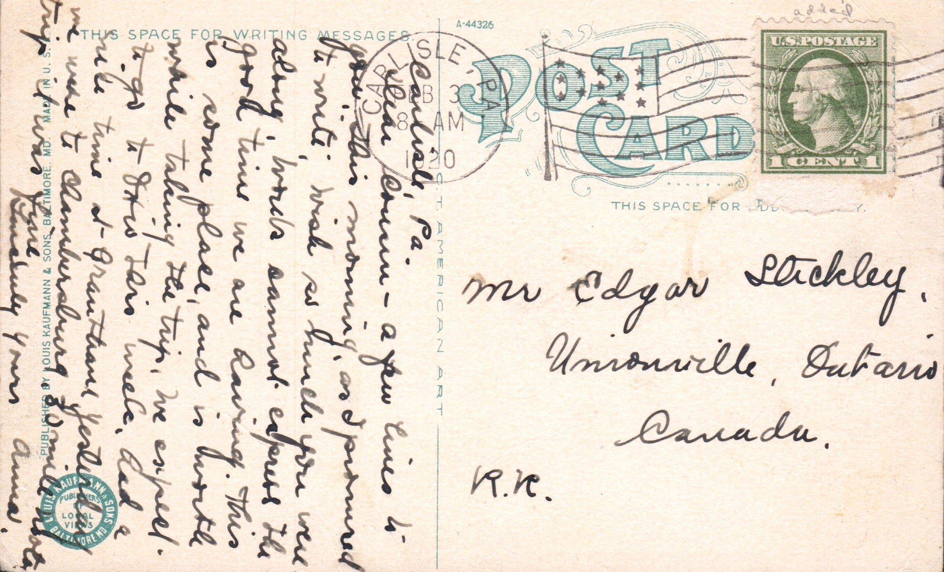 New Cumberland 1909 duplex on post card; Post card: Keystone Motel & Captain Wolfe’s Table [chrome]
