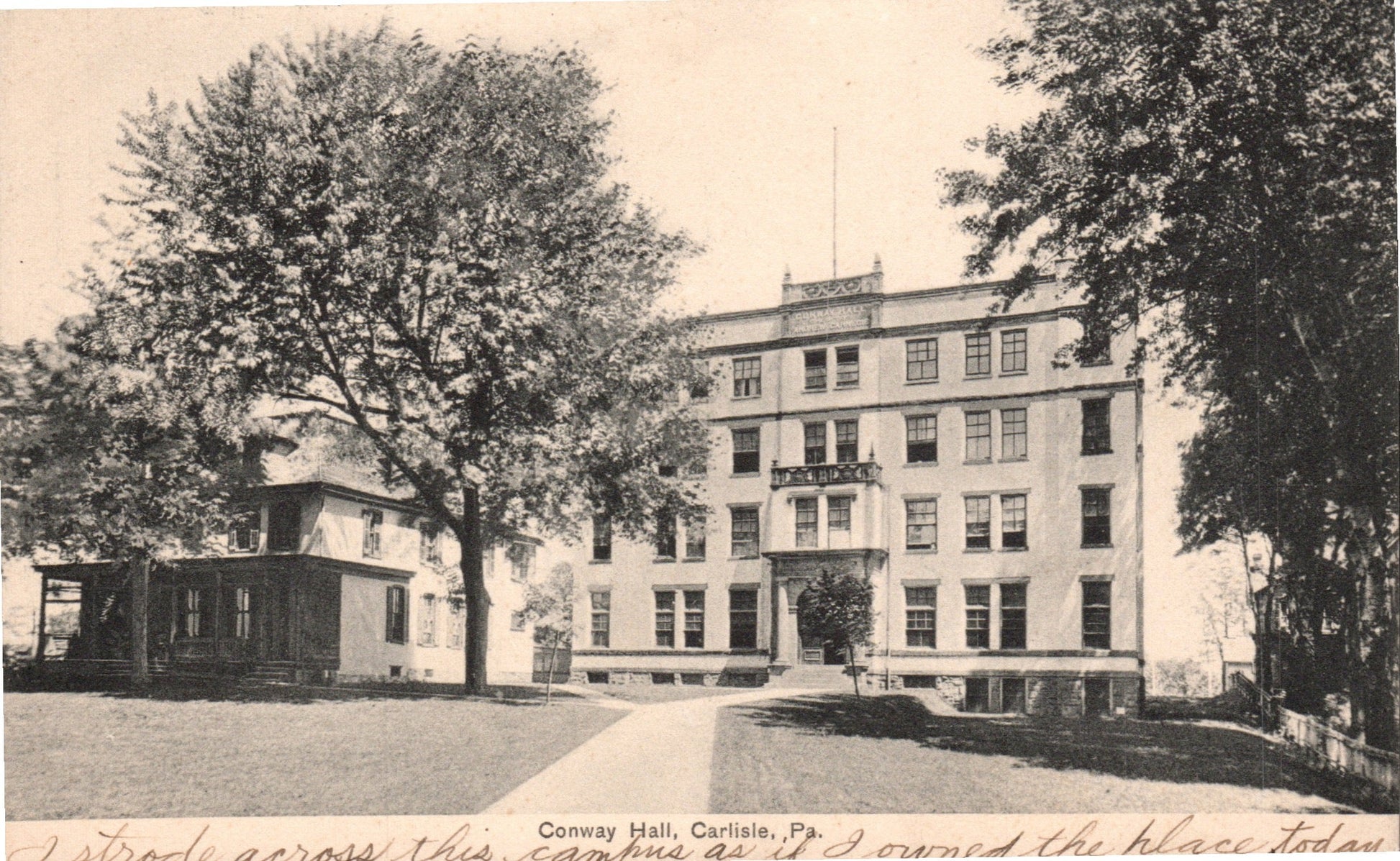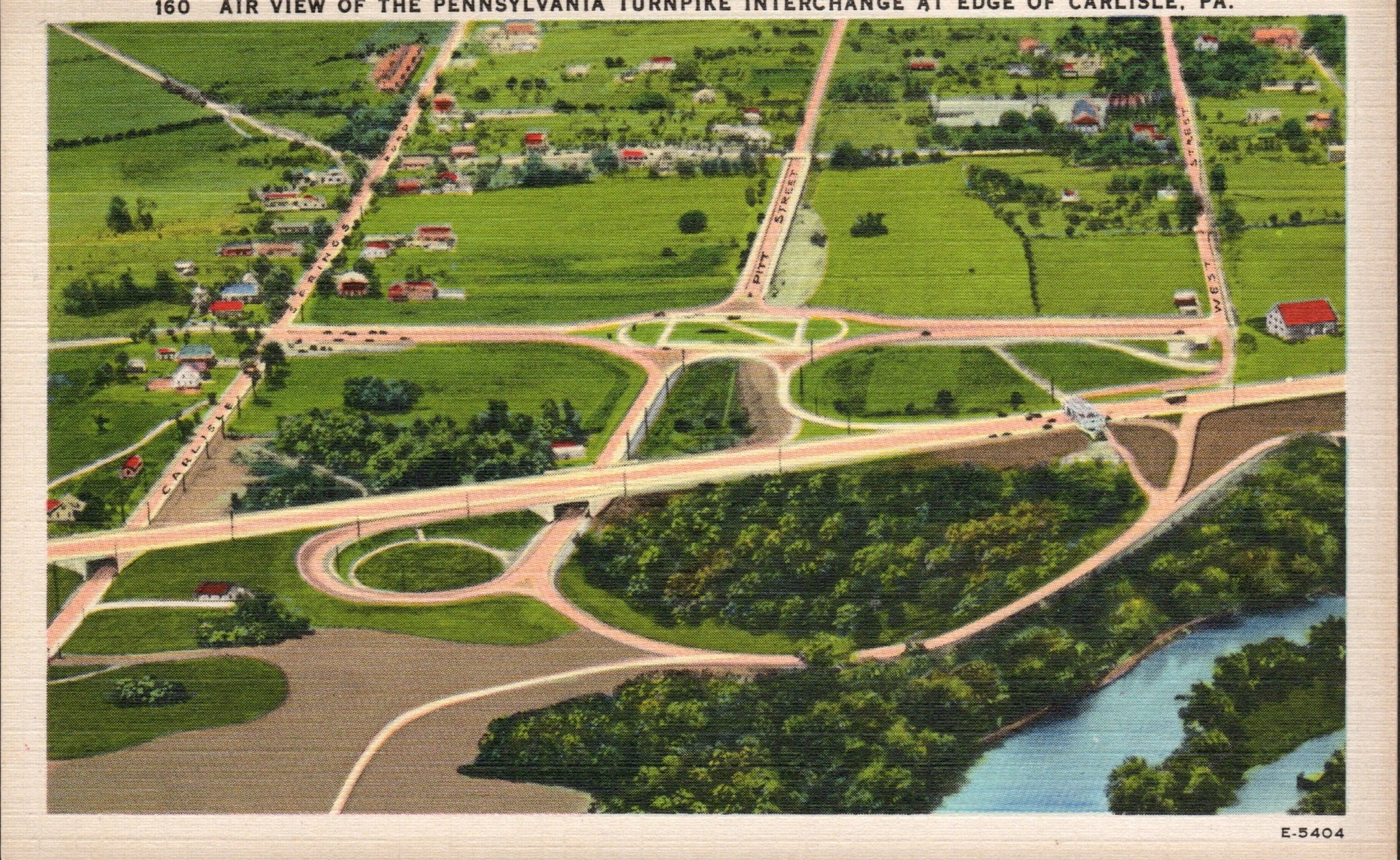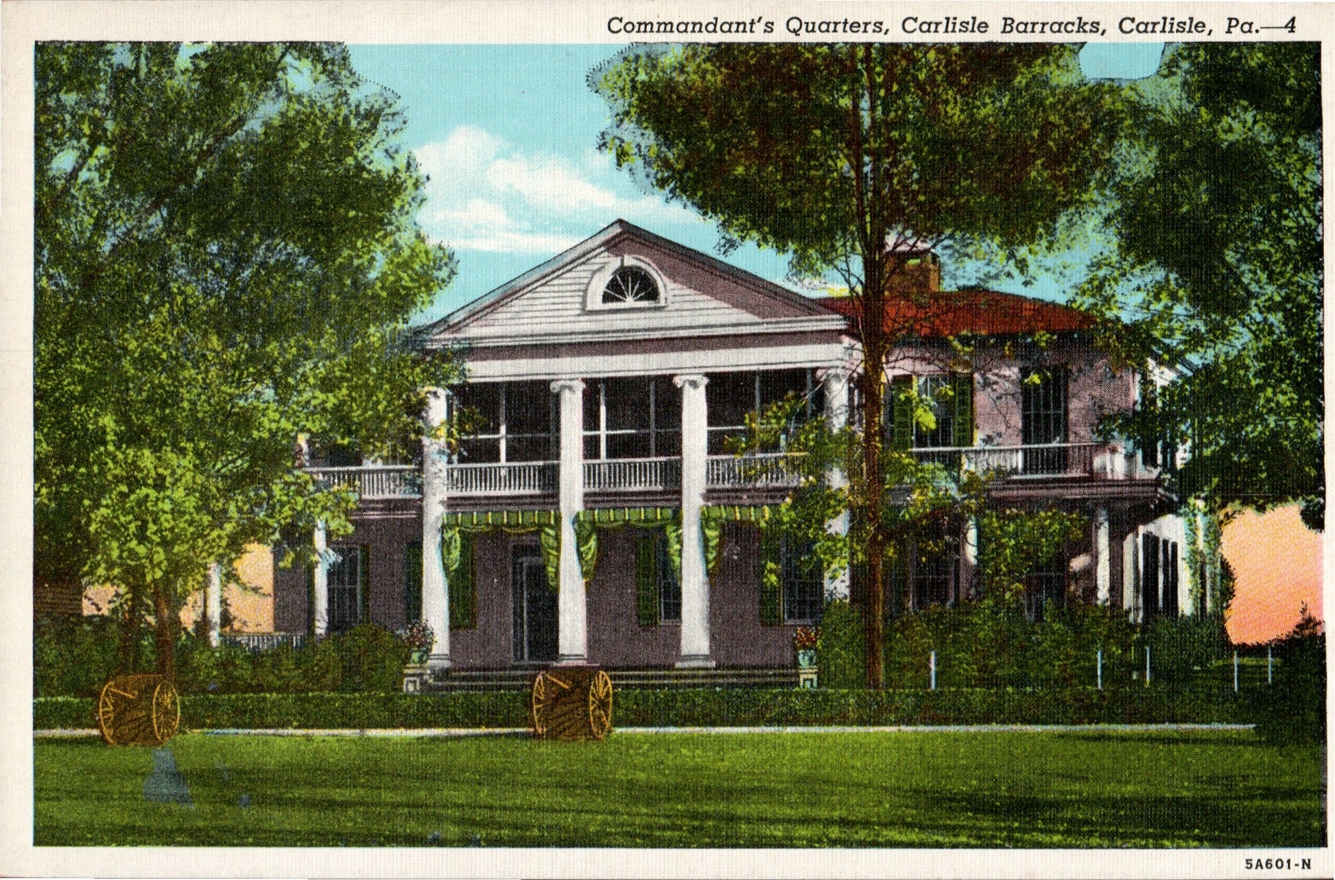 Post cards: Turnpike interchange, aerial (linen); Conway Hall (B&W, 1907); NCO barracks (linen); Commandant’s Quarters (linen); Molly Pitcher Monument [white border]
