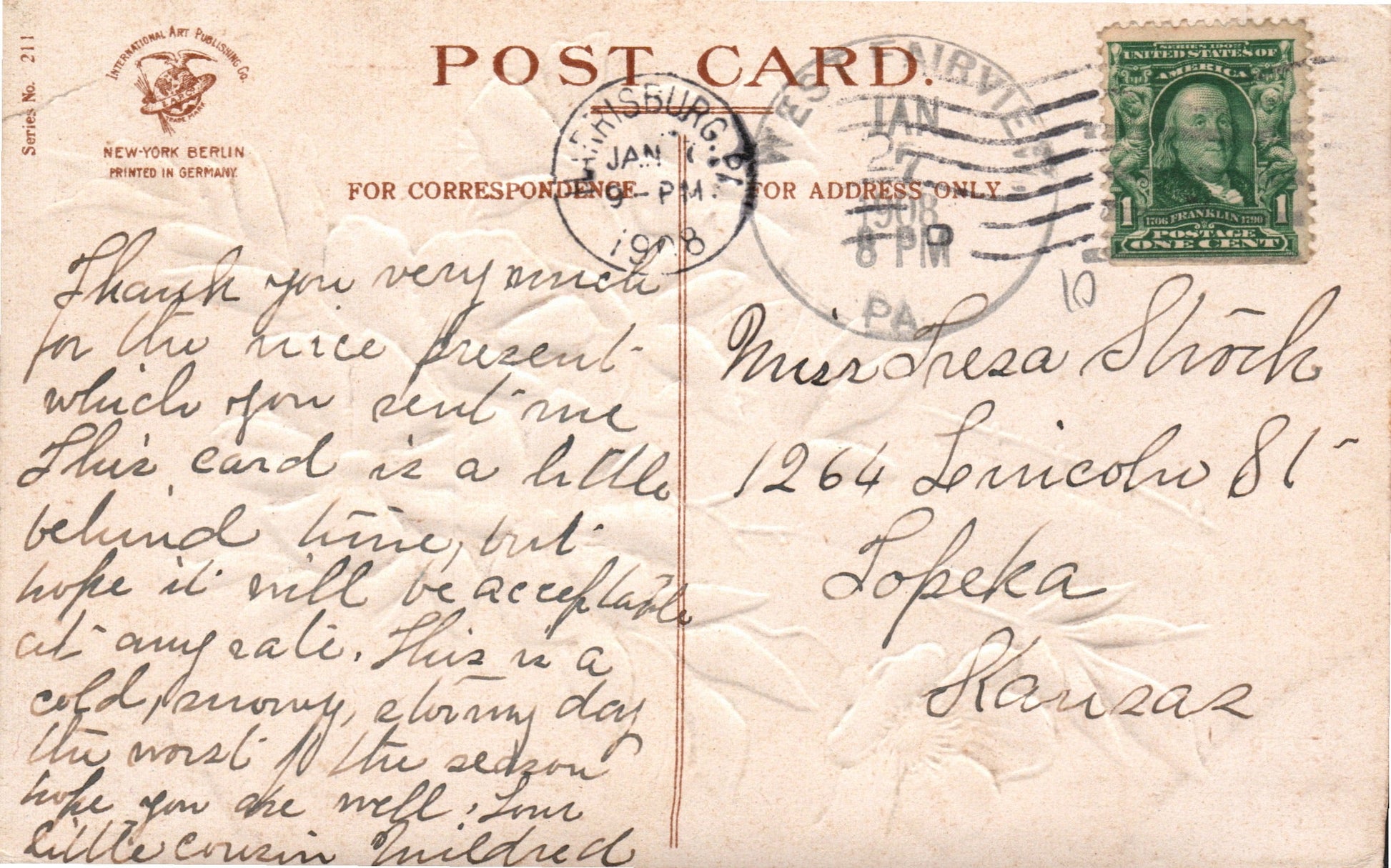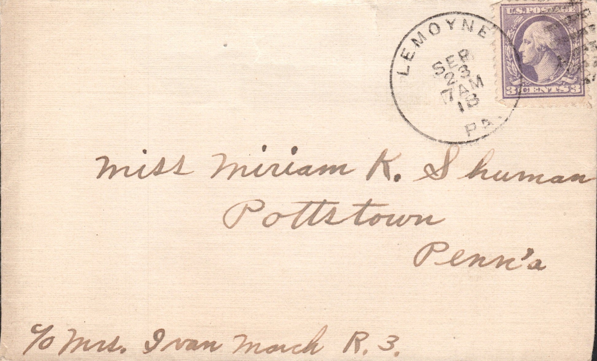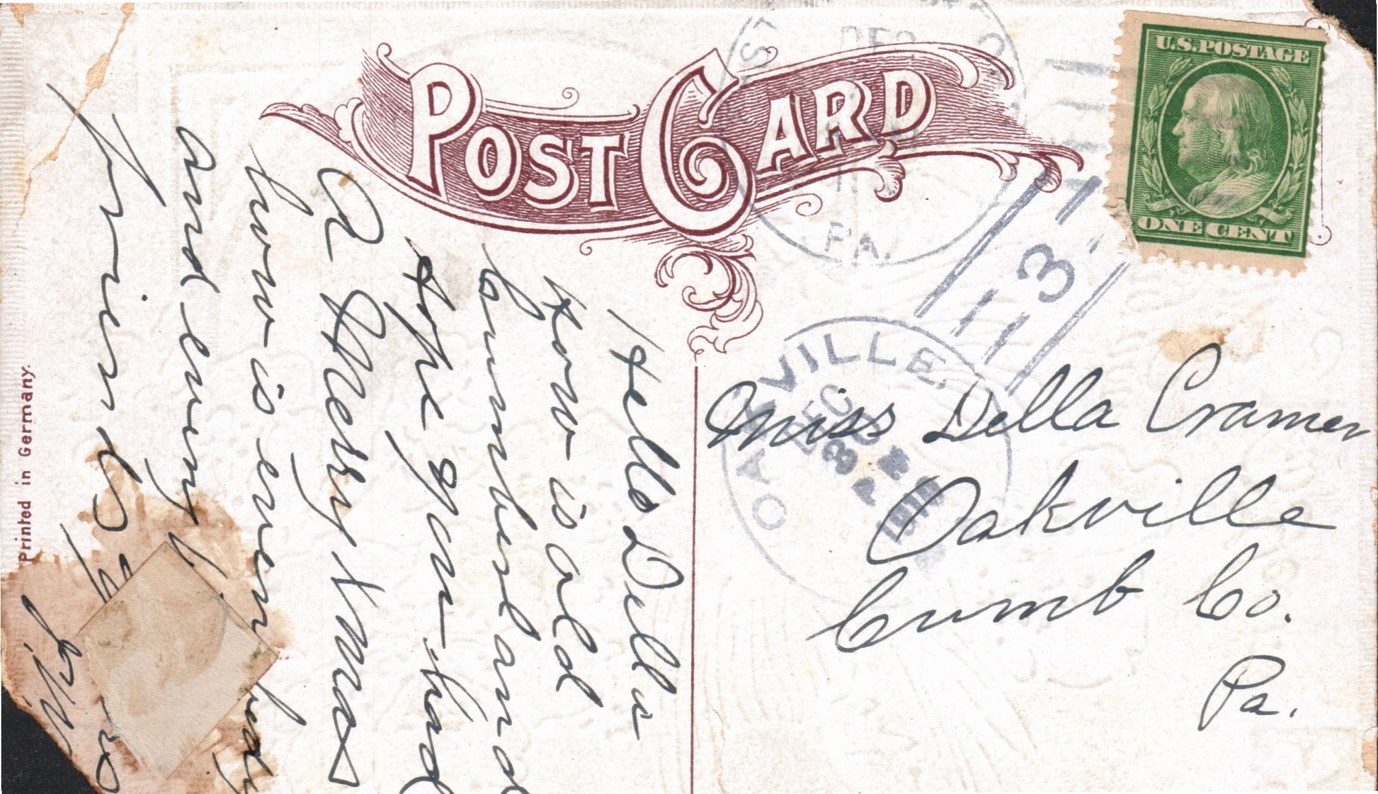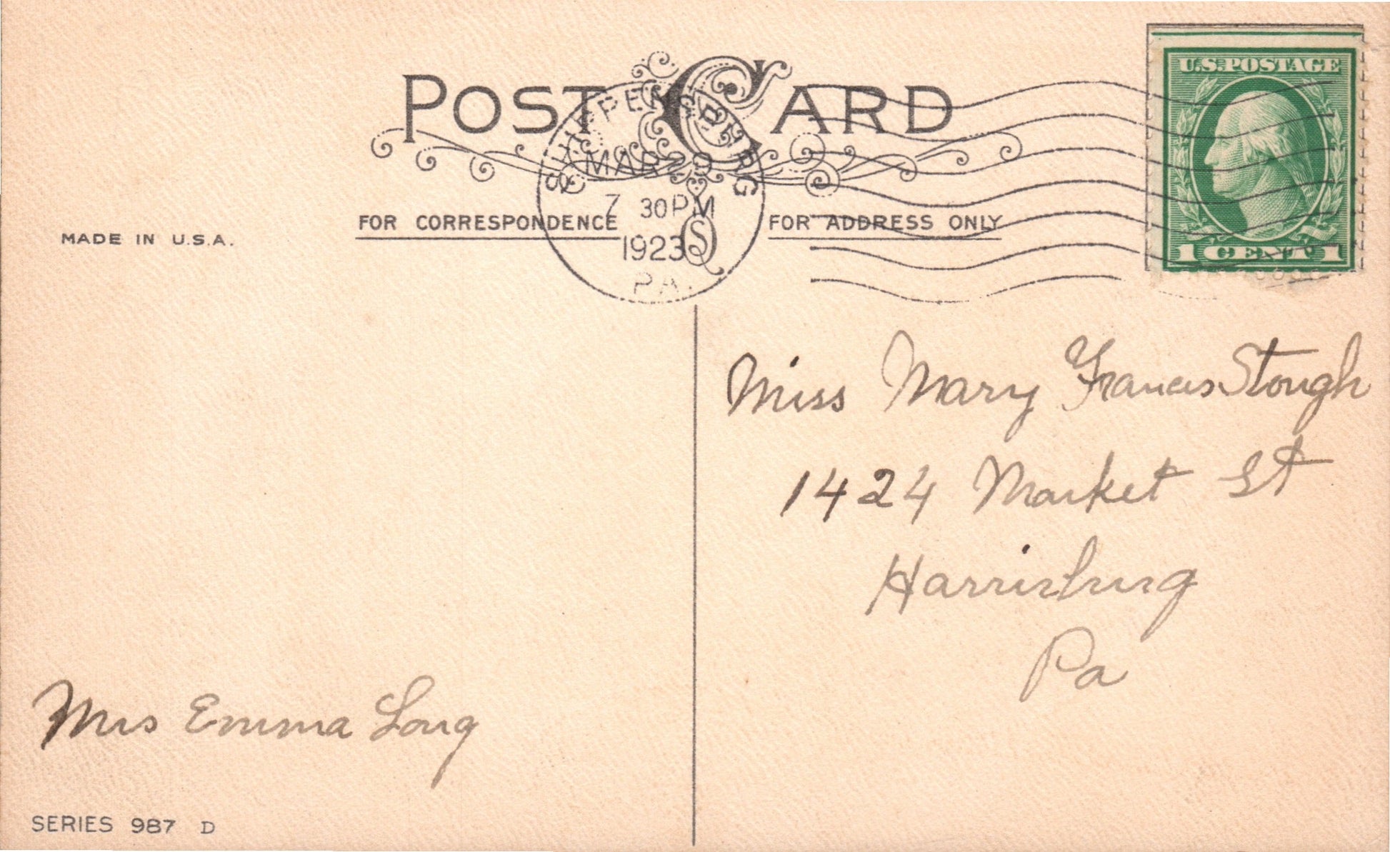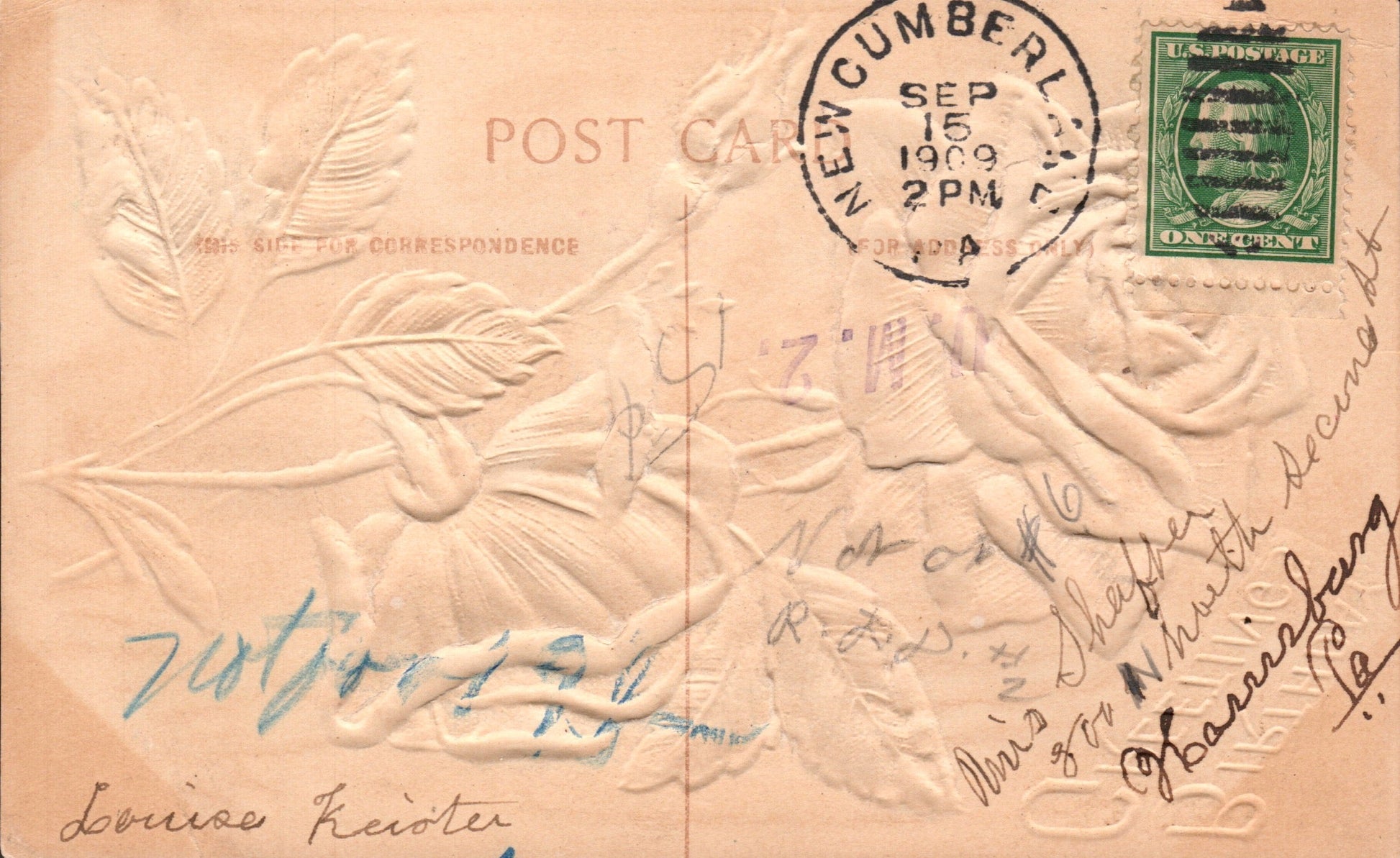 West Fairview (1892-1965) 1908 4-bar overstruck Harrisburg on post card
