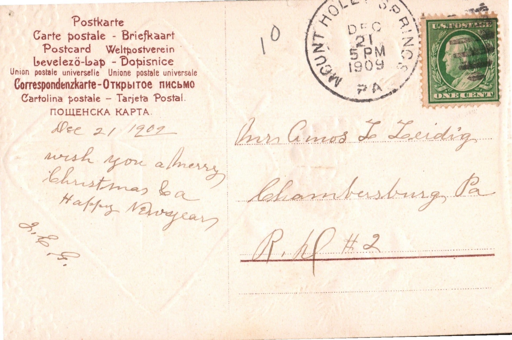 Mount Holly Springs 1909 duplex slightly off top on post card