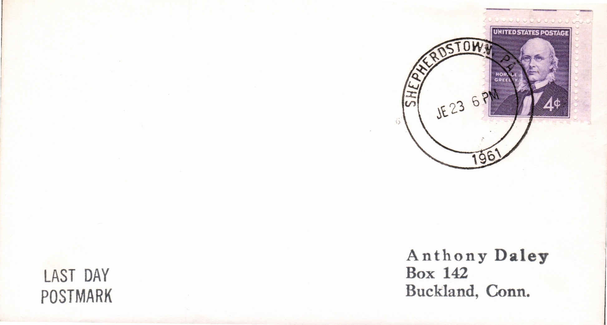 Shepherdstown (1824-1961) 1961 double-circle on LD cover