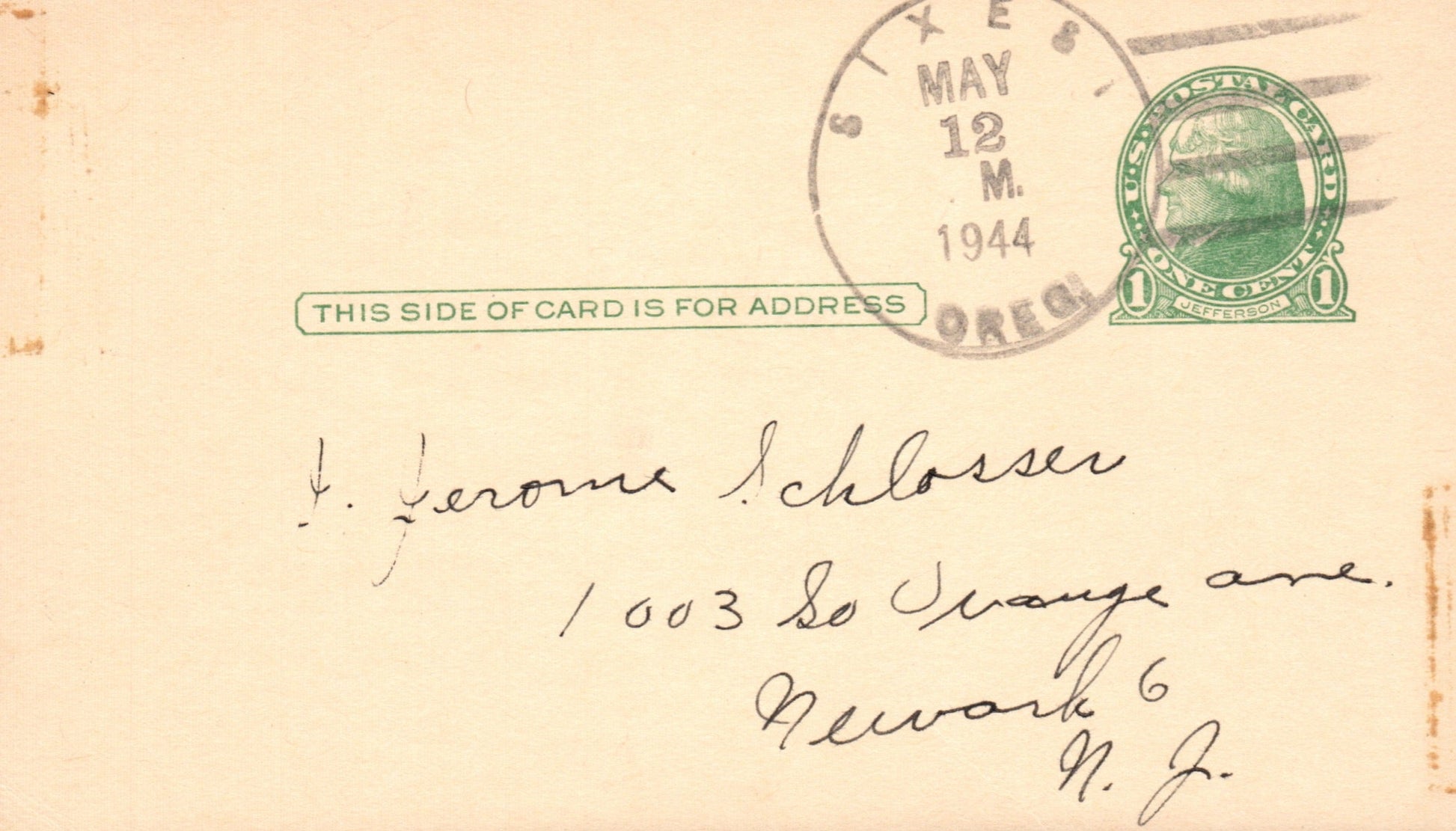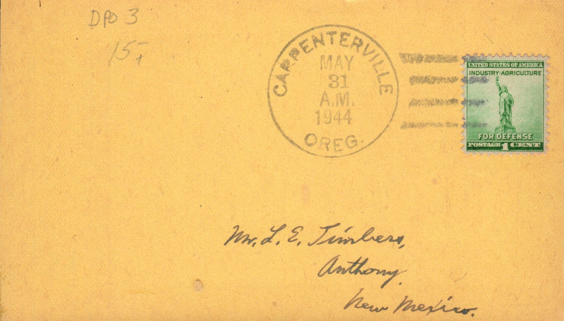 Carpenterville (1932-1944) 1944 4-bar on 3x5 card