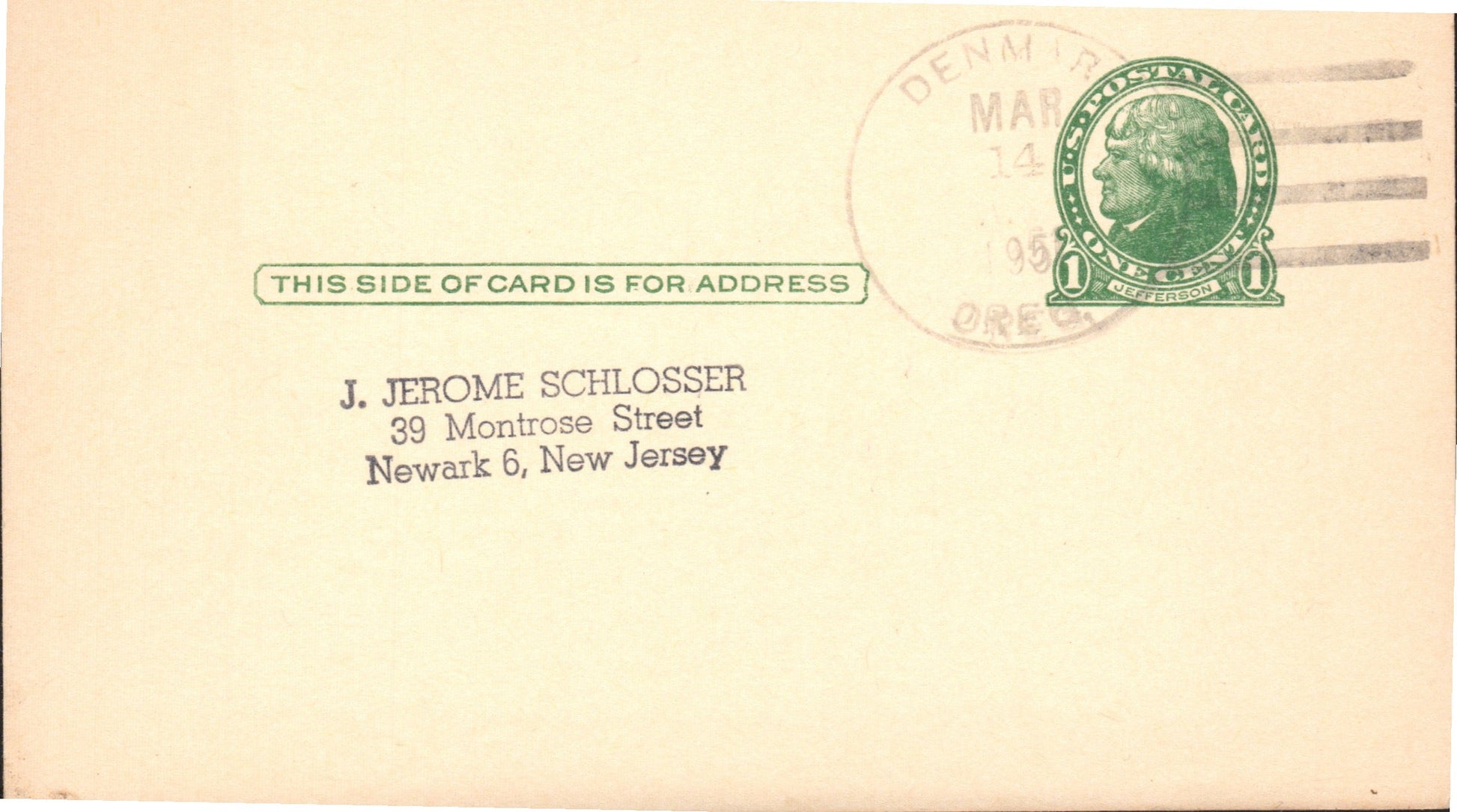 Wedderburn 1951 duplex on Postal Card