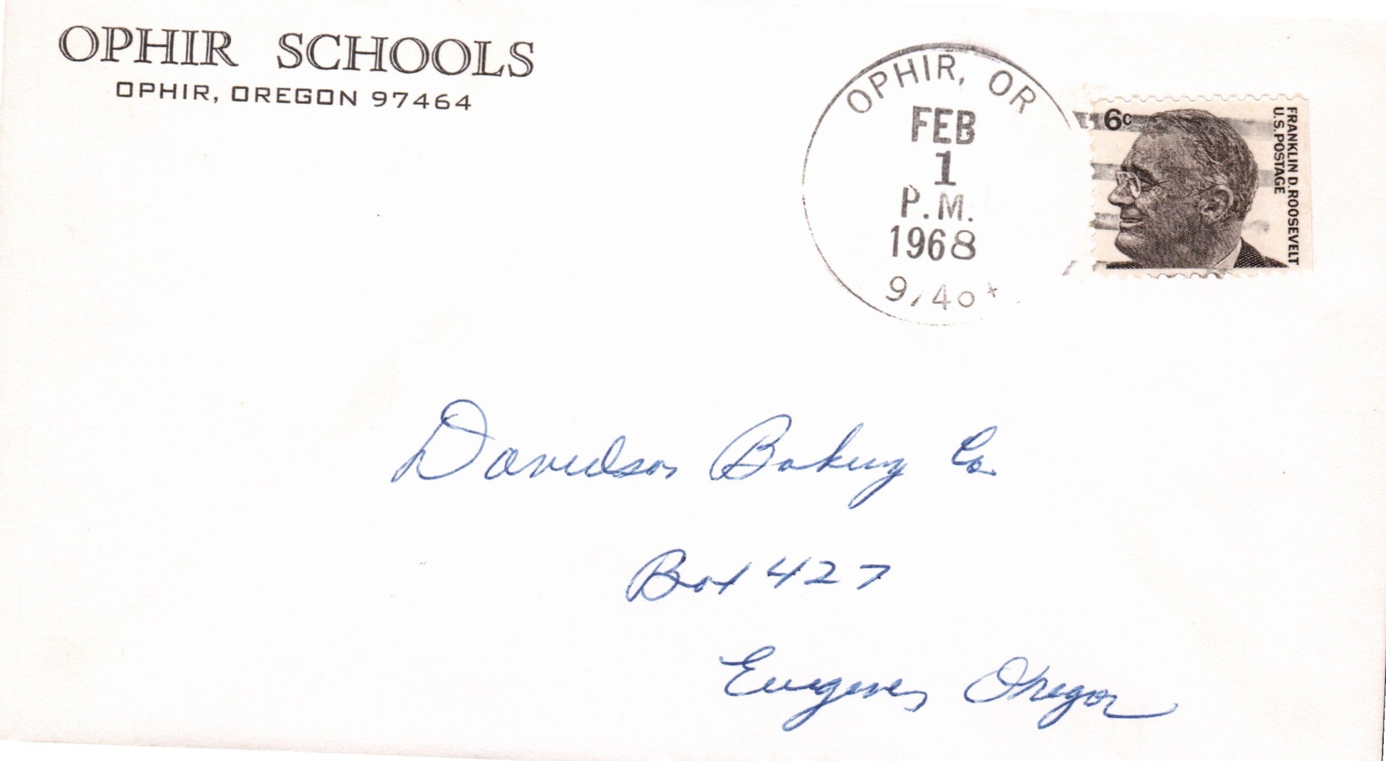 Ophir 1968 4-bar on cover, “Ophir Schools” corner