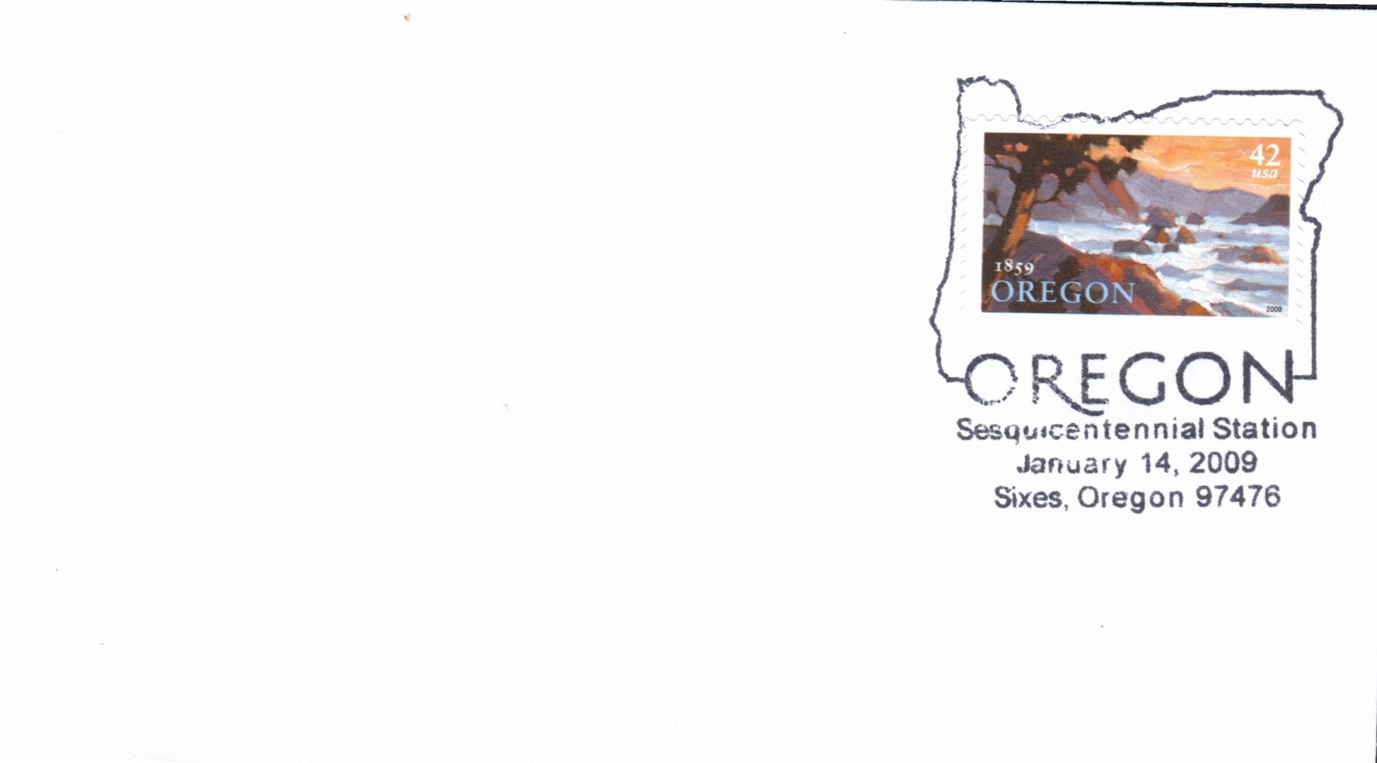 Sixes 1944 4-bar on Postal Card; 2009 Oregon Sesquicentennial pictorial cancel on cover