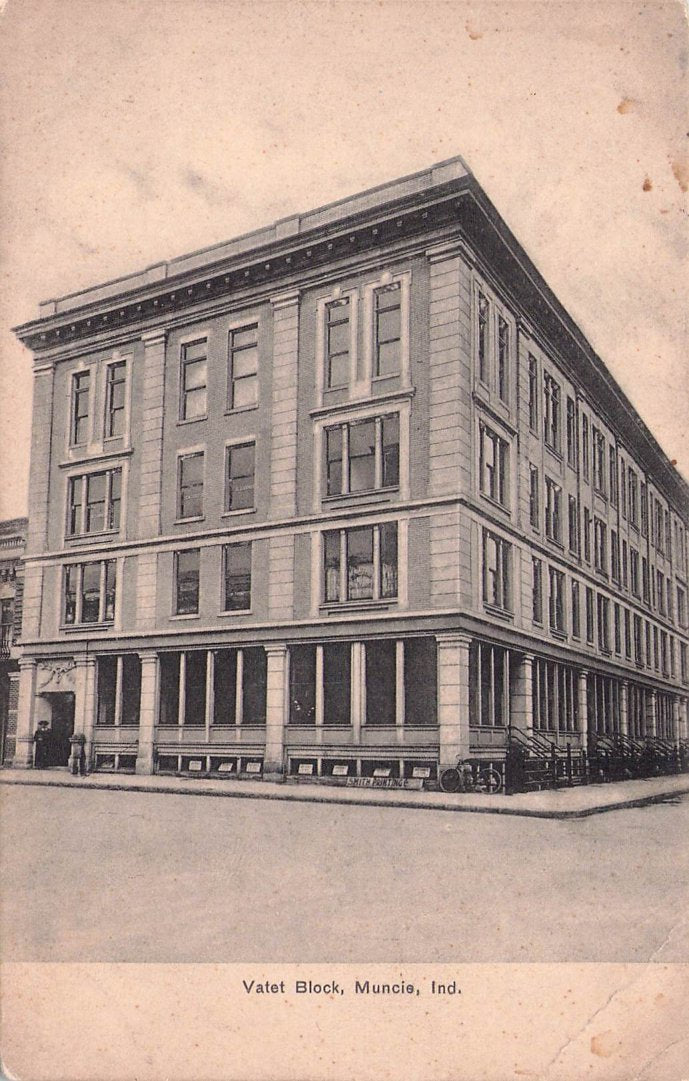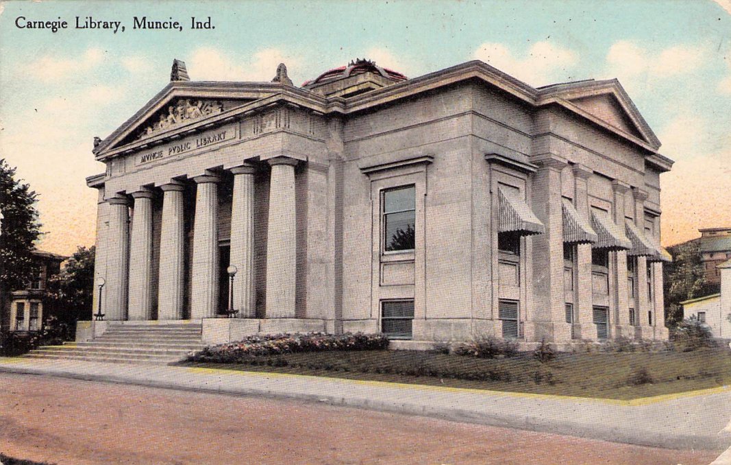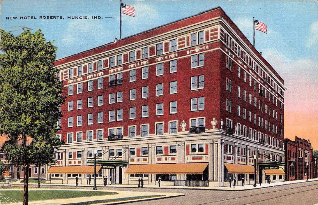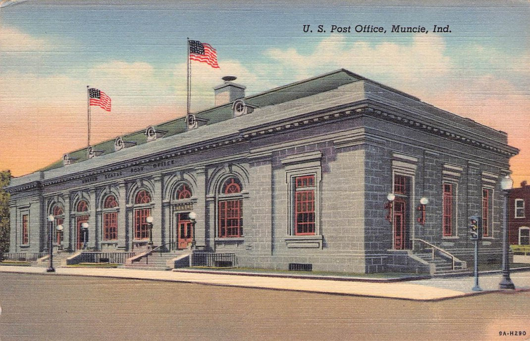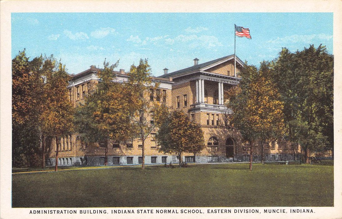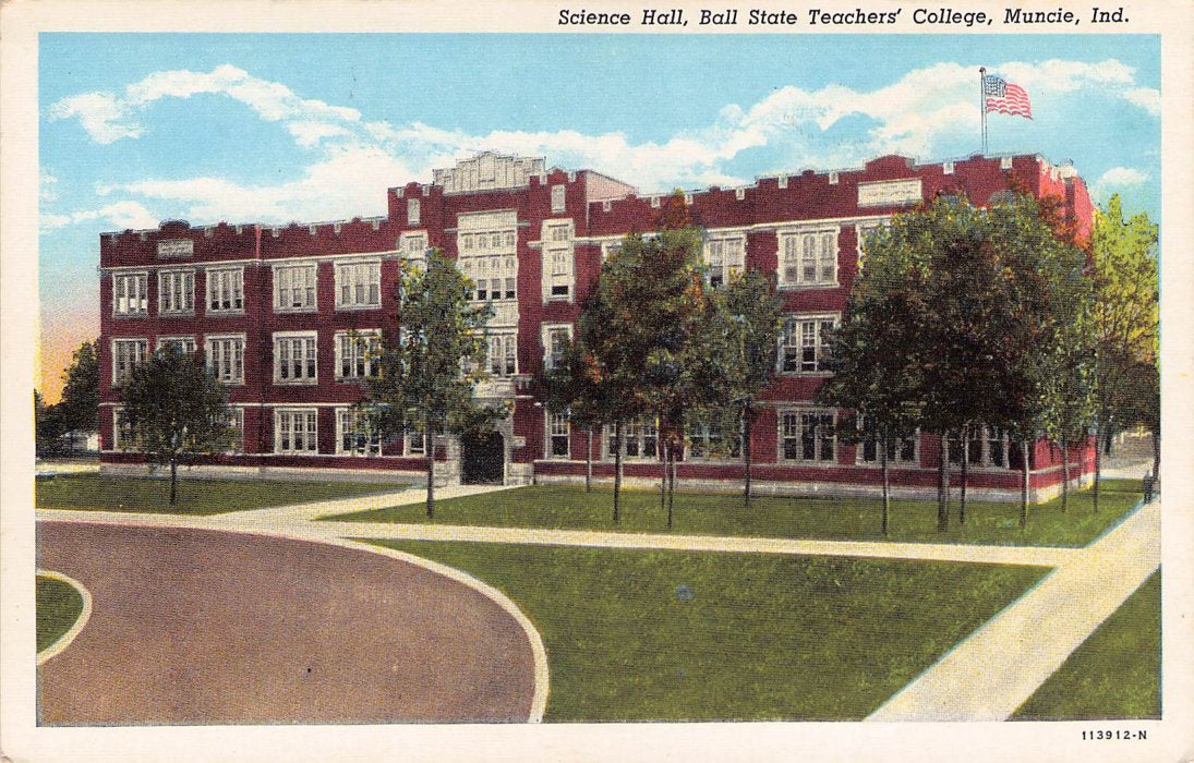 Post cards: Vatet Block [c.1910]; New Hotel Roberts [1938]; Carnegie Library [c.1910]; Post office [linen]; “Hazelwood” [linen]; Indiana State Normal School Administration Bldg. [c.1930]; Ball State Science Hall [linen]; Ball State Music Hall [1963]; McCullough Park [1910]
