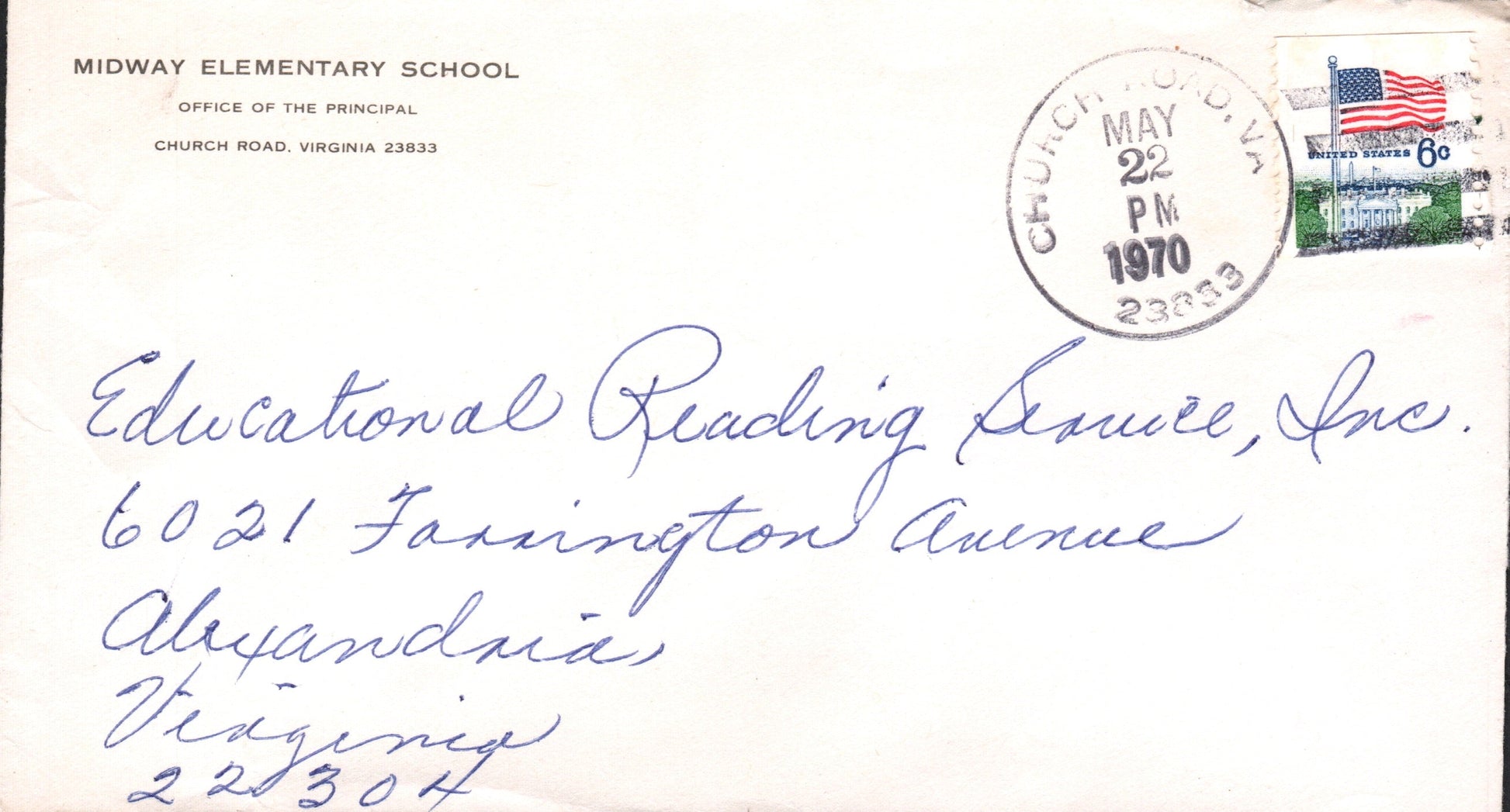 Church Road 1970 4-bar on cover. “Midway Elementary School” corner