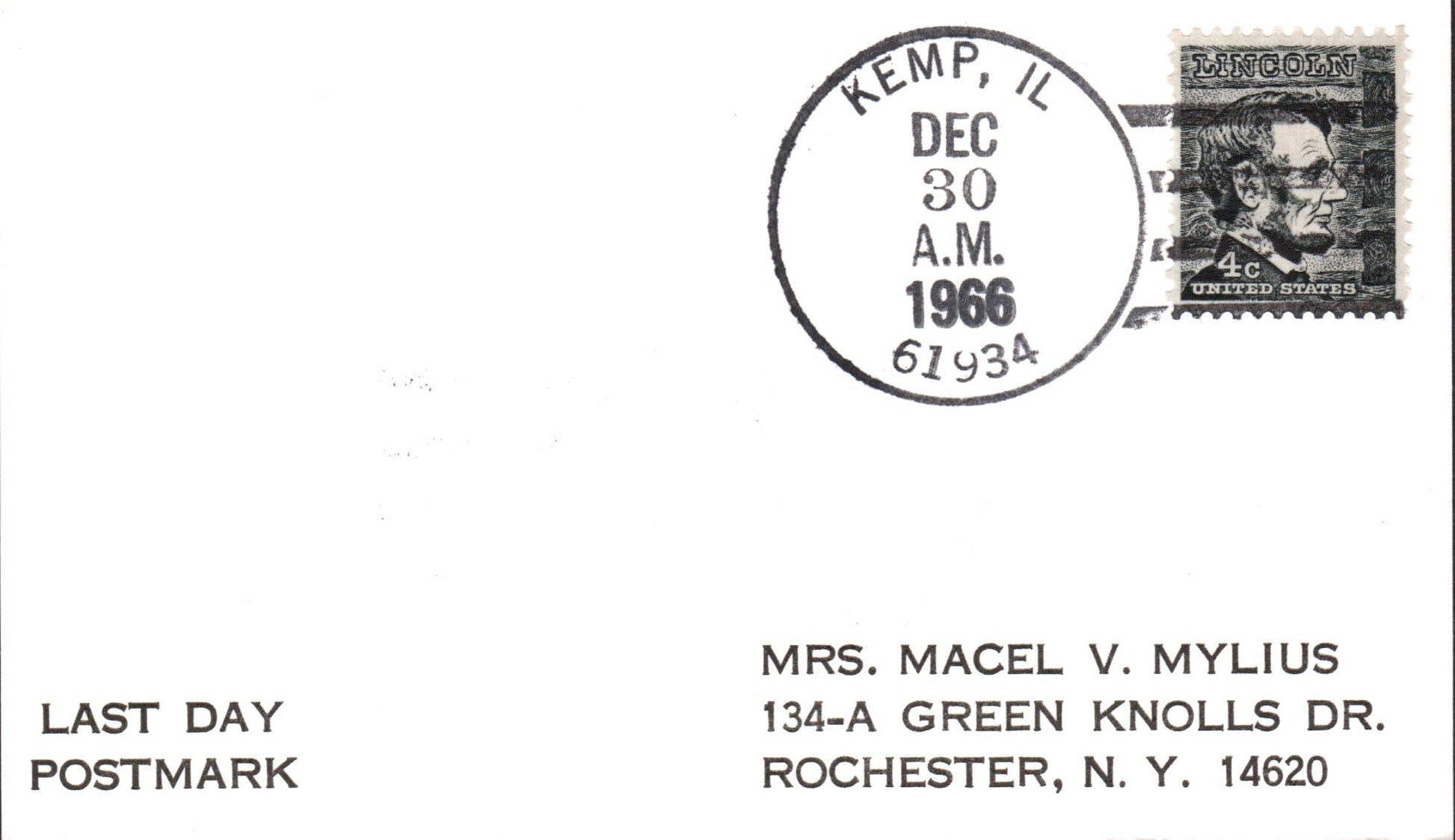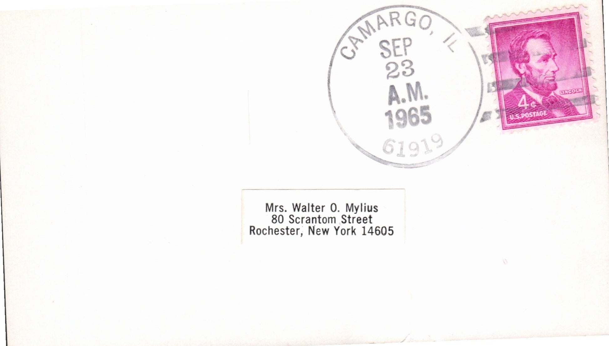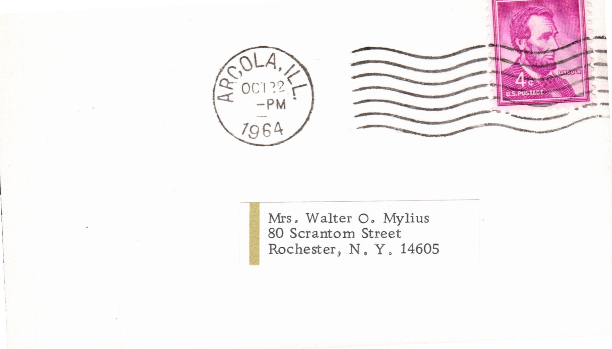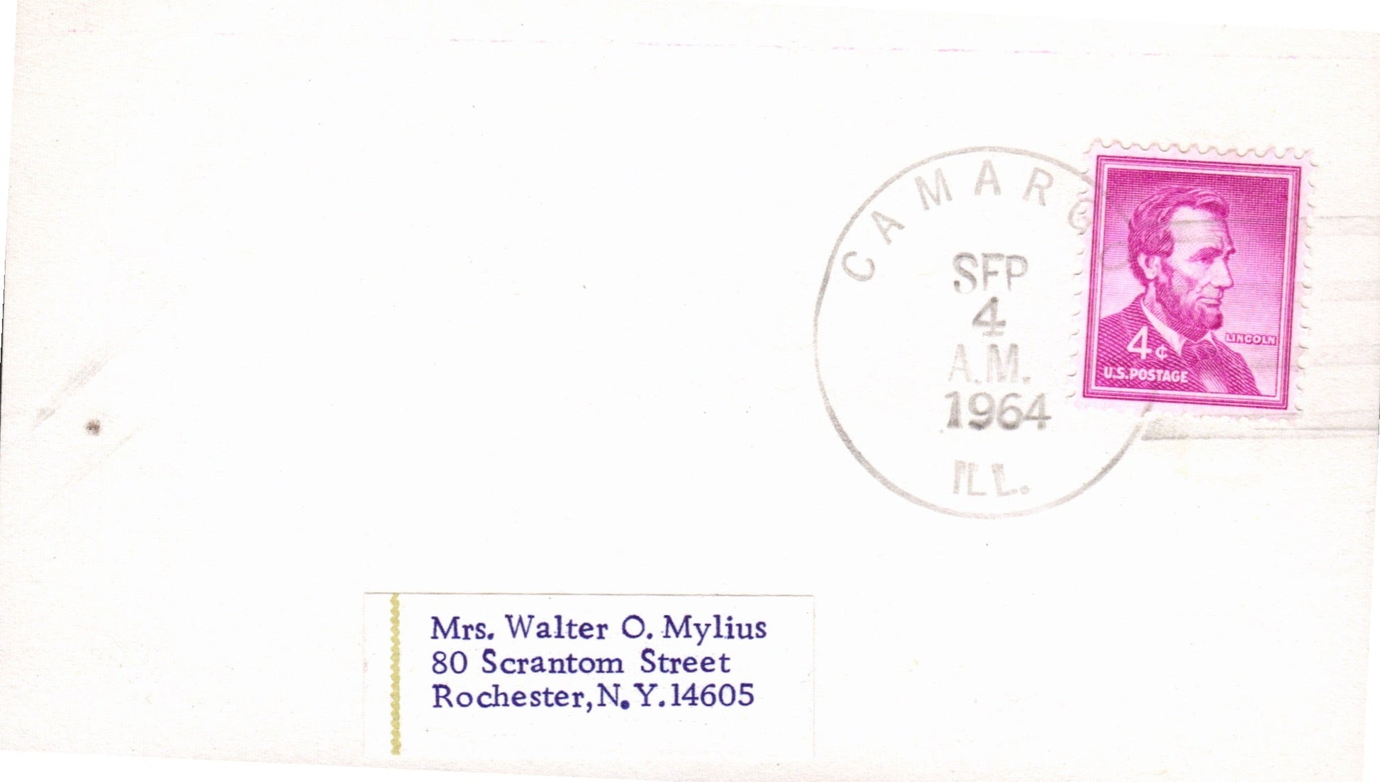 Arcola 1964 machine cancel on 3x5 card; 1970 roller on cover