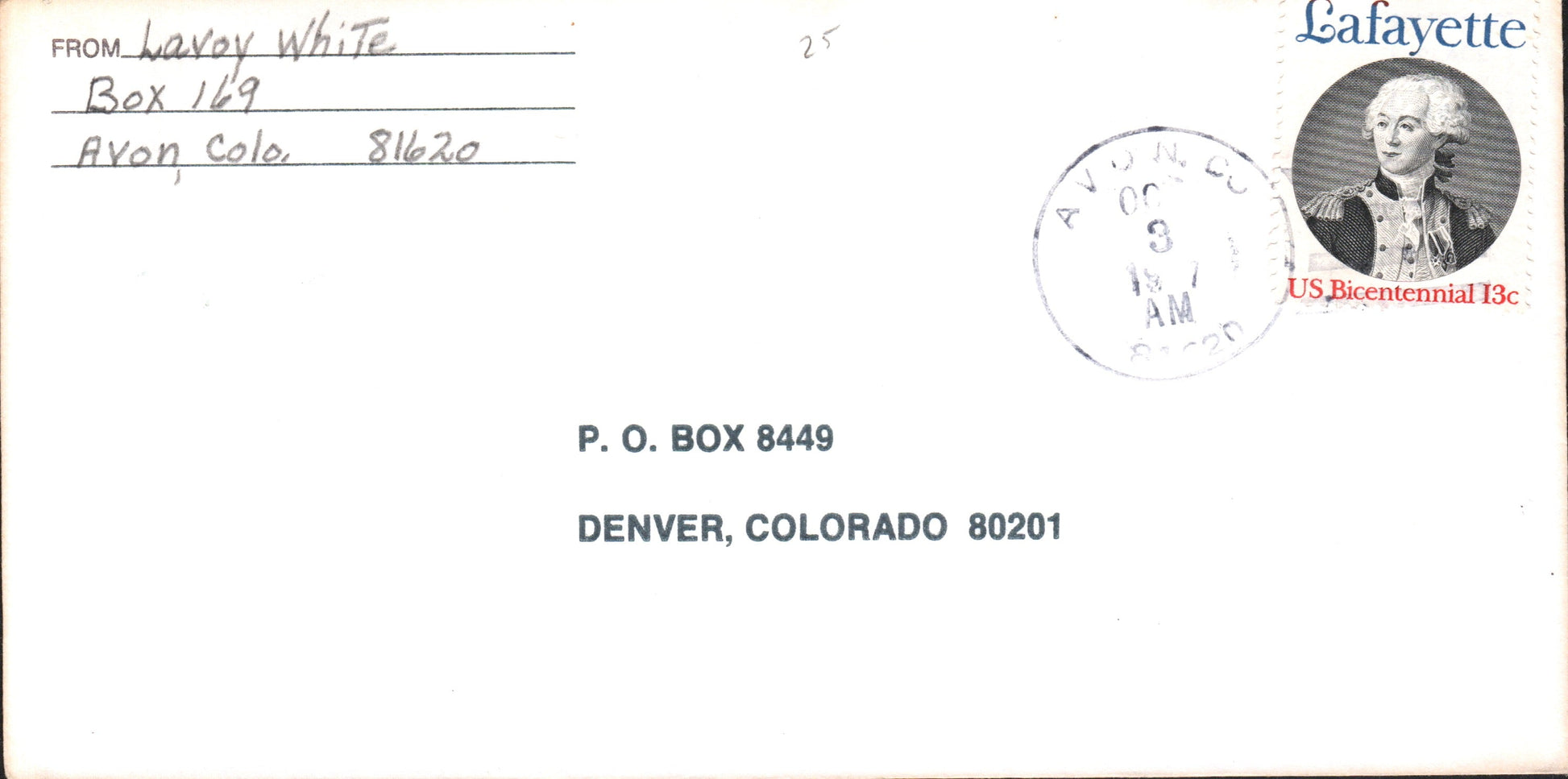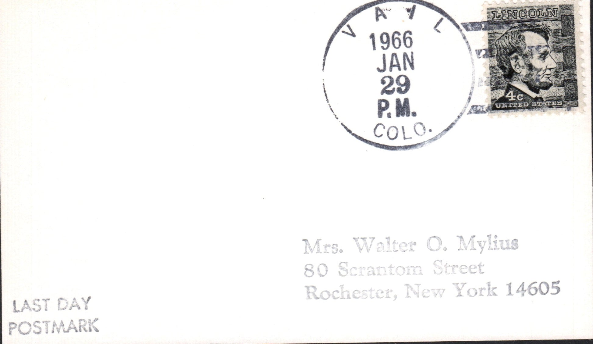 Vail 1966 4-bar on First Day as Independent P.O. 3x5 card