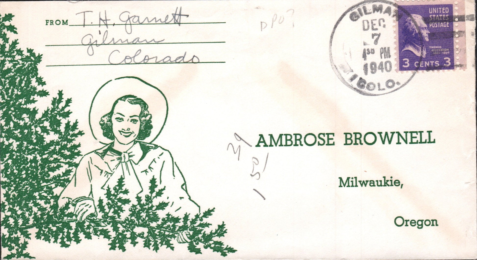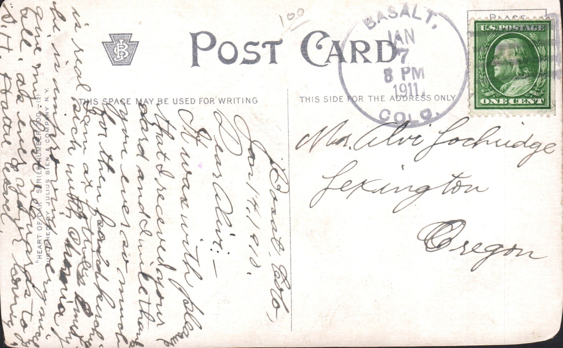Red Cliff 1908 4-bar on post card, small corner piece missing; 1977 4-bar on oversized cover