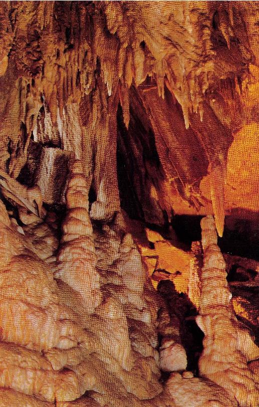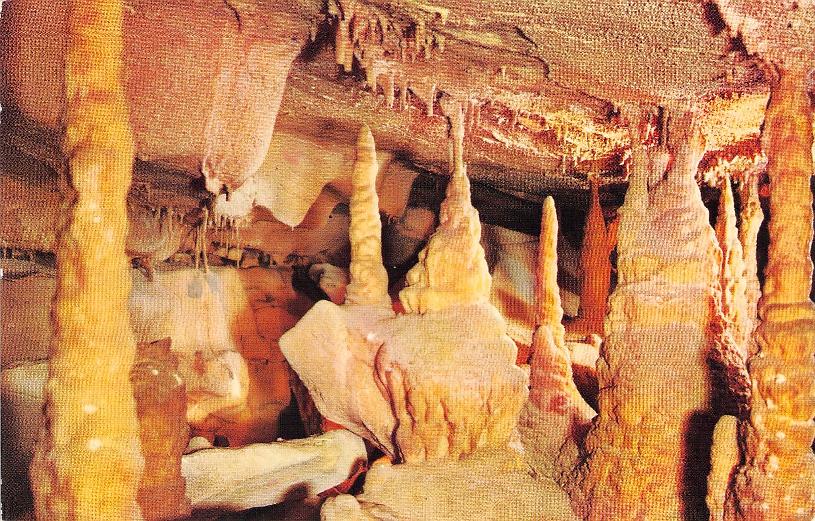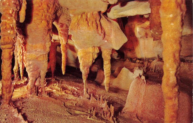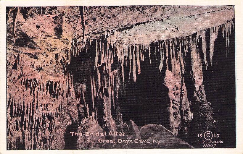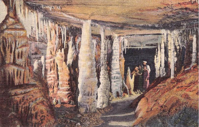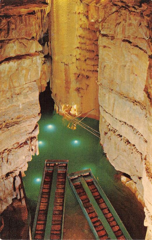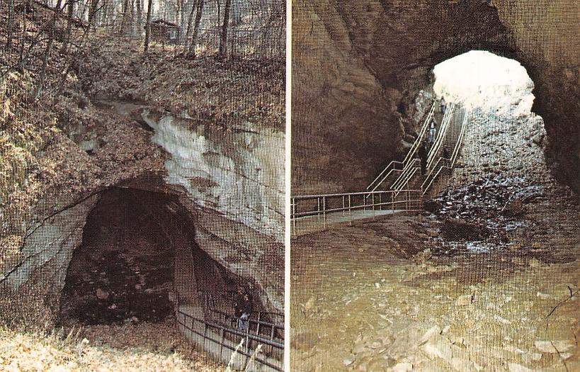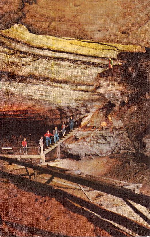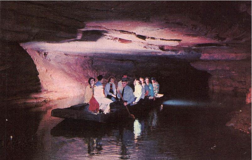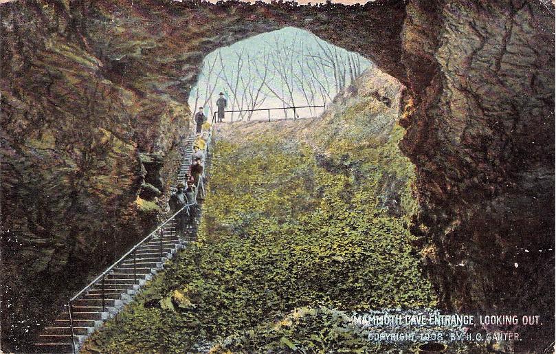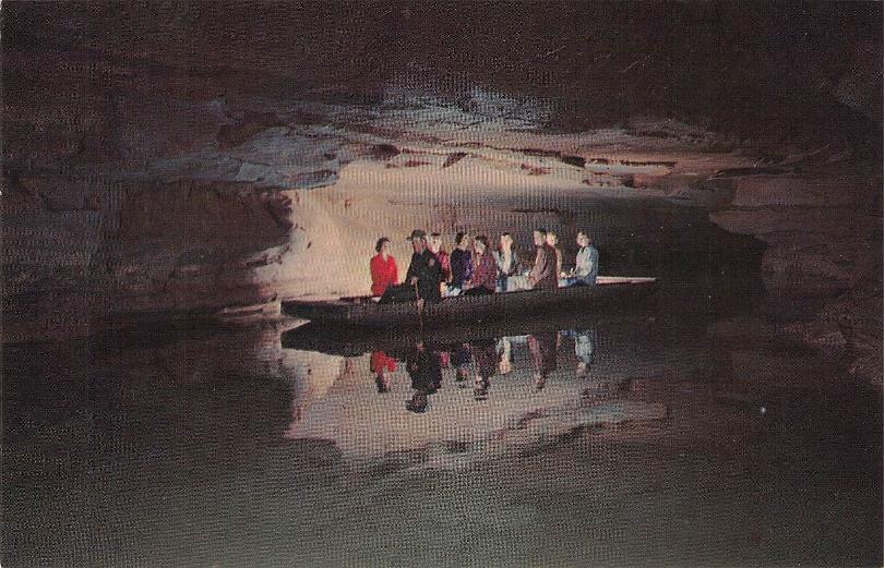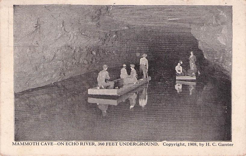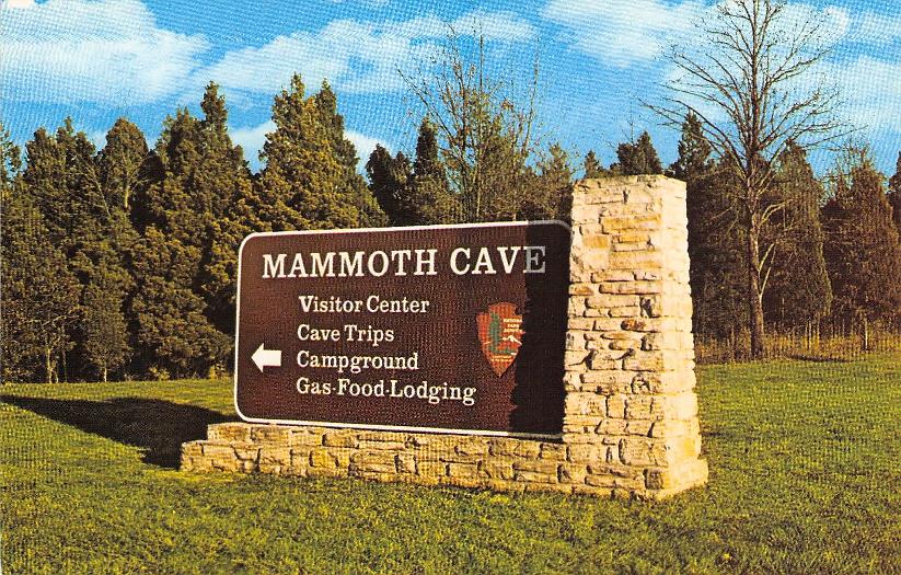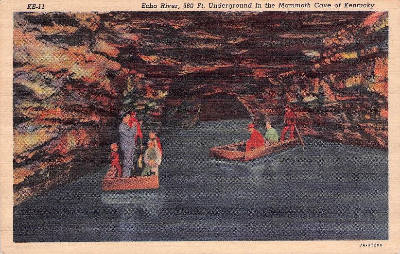 - Mammoth Cave National Park post cards: Entrance sign [chrome]; Mammoth Cave Hotel [linen]; Mammoth Cave RR cars [chrome]; Boating on Echo River [B&W, 1921]; 18 different underground views, [one B&W, six linen, eleven chrome]