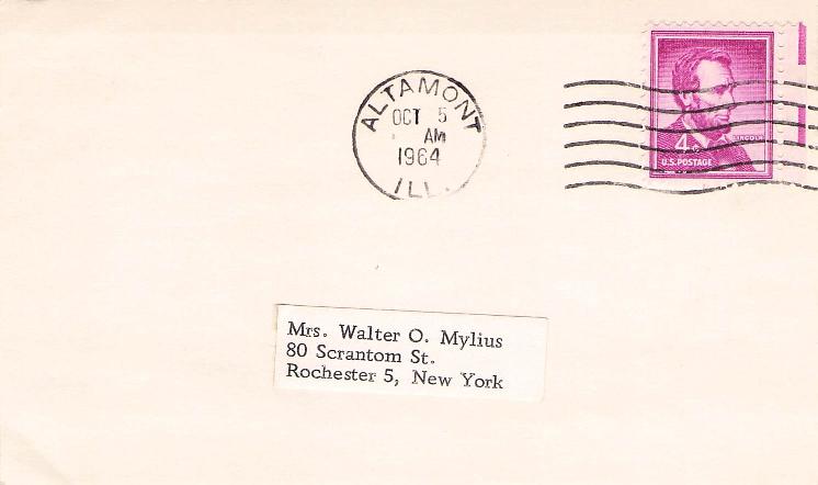 - Altamont 1894 cds on cover, 2¢ Columbian envelope; 1964 machine cancel on 3x5 card