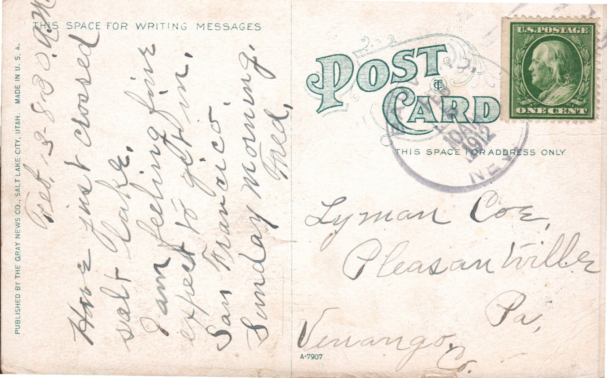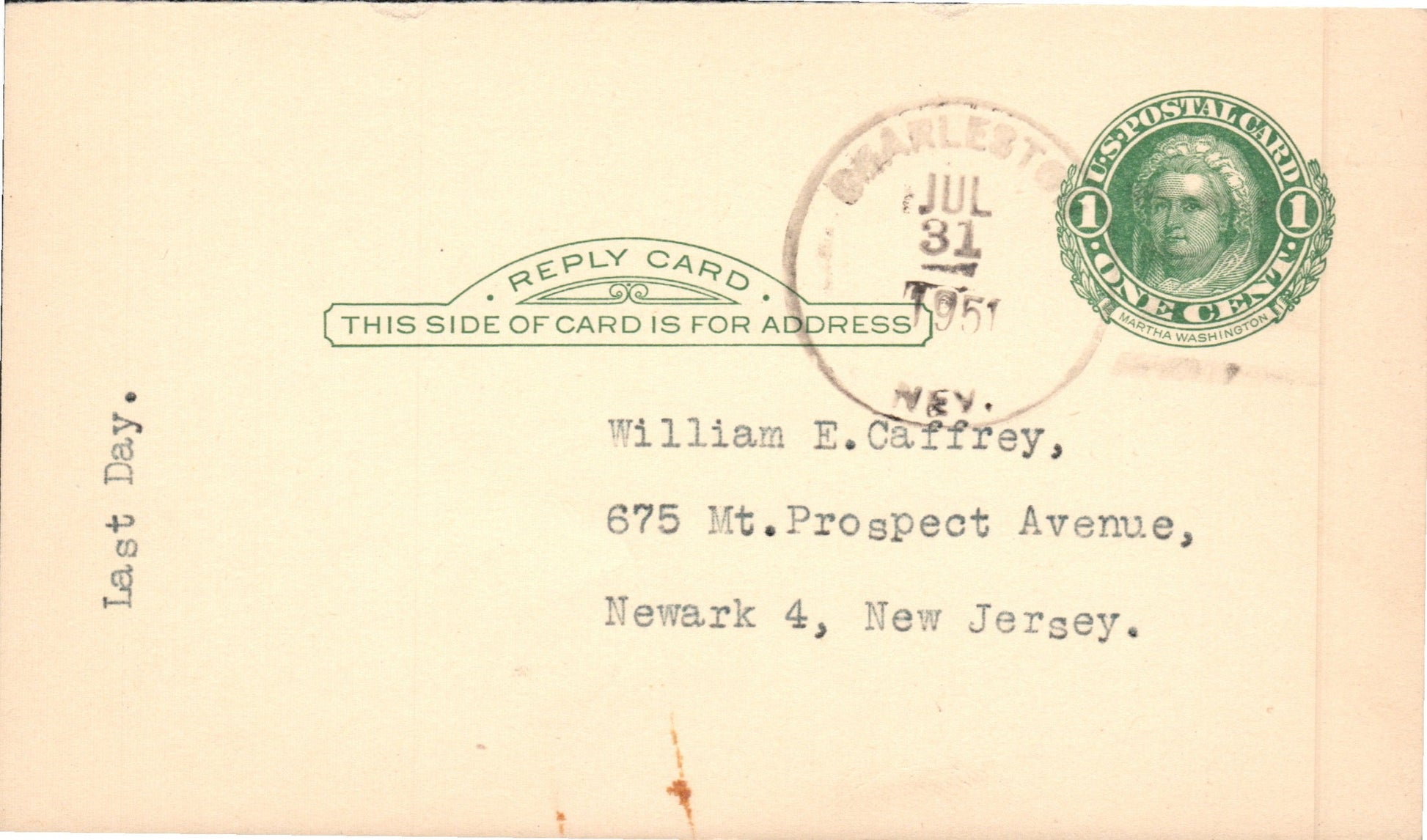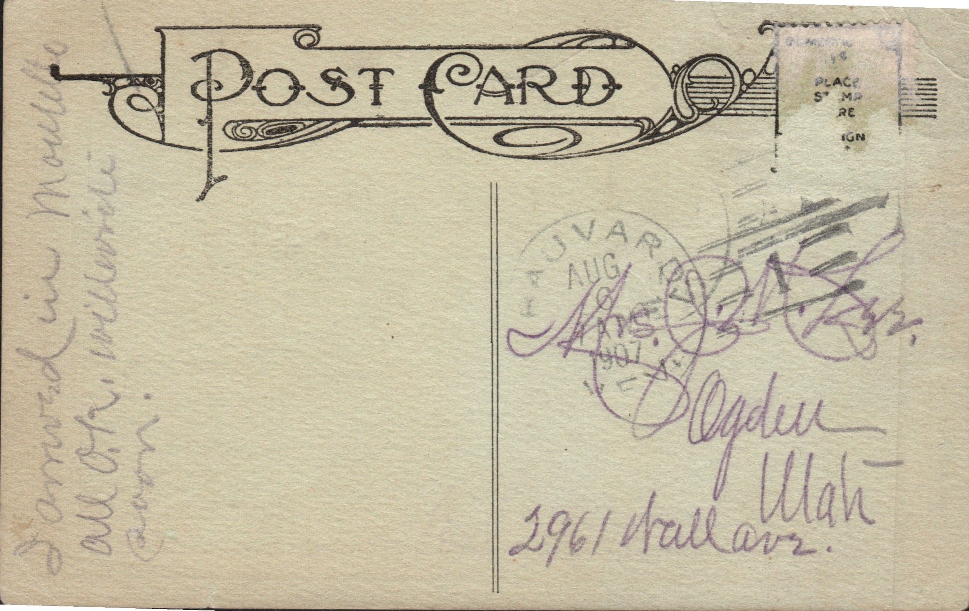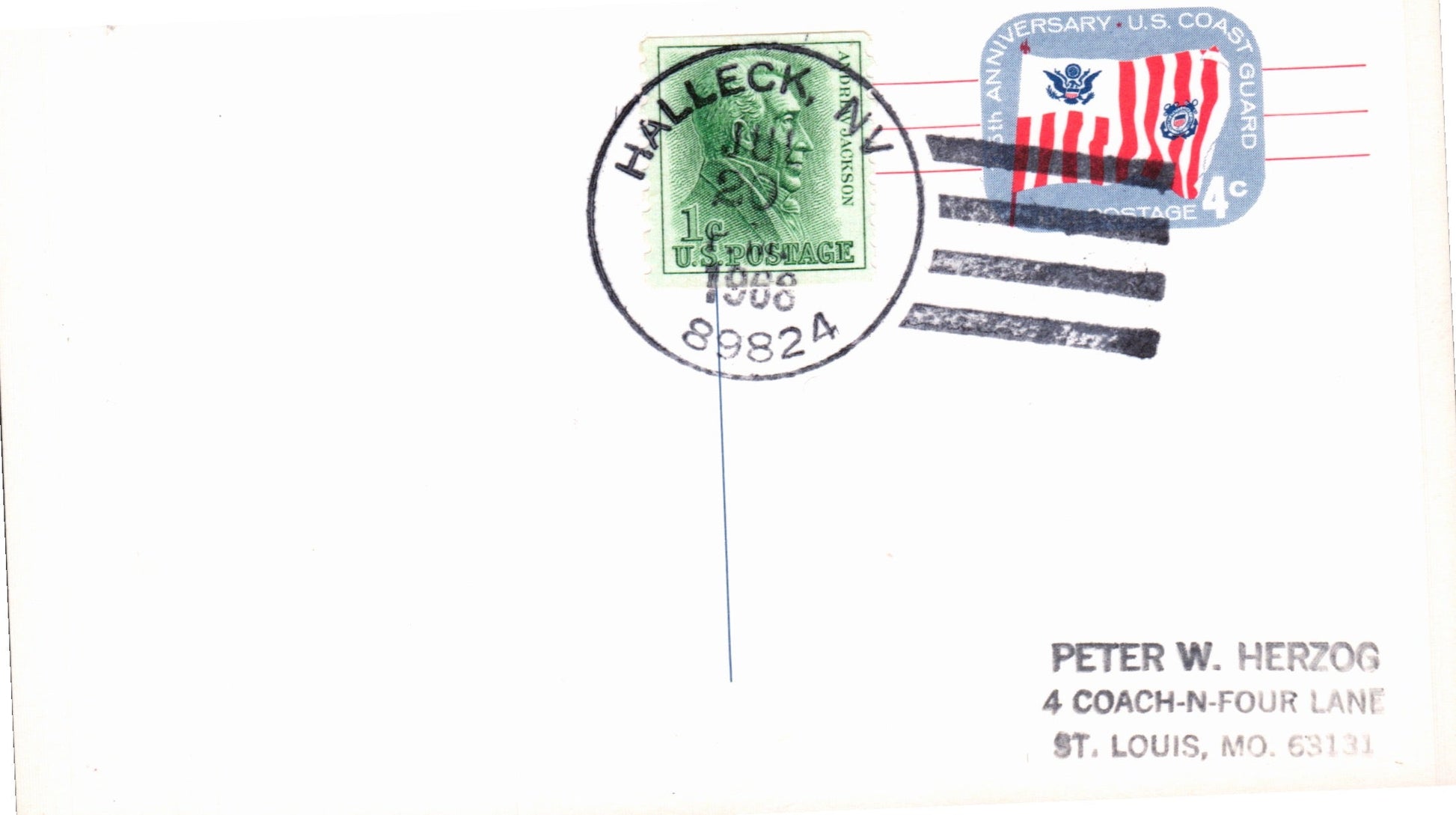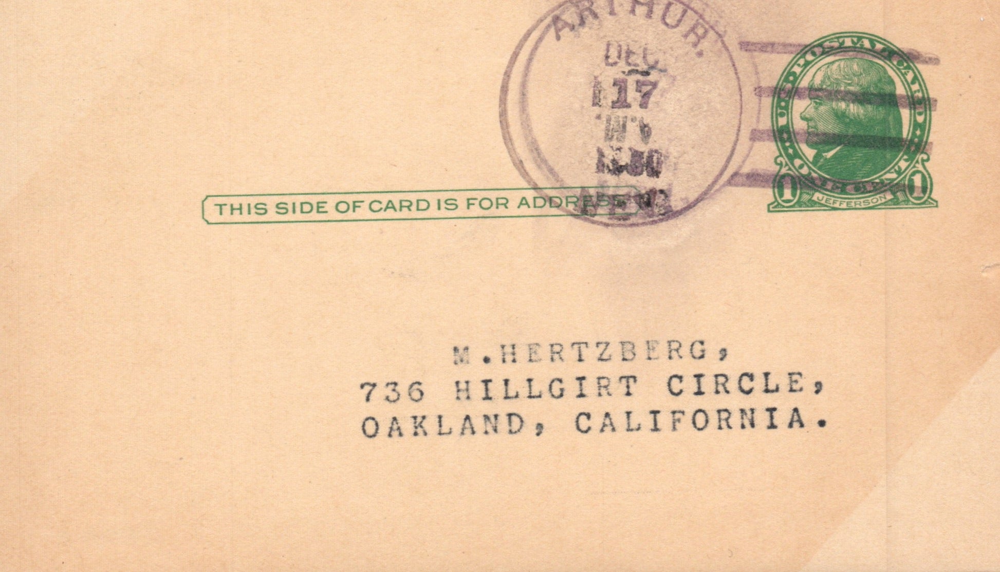Arthur (1881-1951) 1908 4-bar or Doane on post card; 1950 4-bar on Postal Card