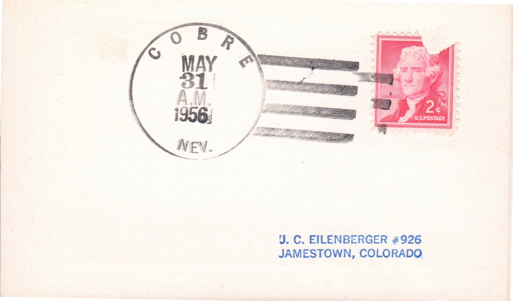 Cobre (1906-1956) 1905? 4-bar on post card; 1956 4-bar on 3x5 card