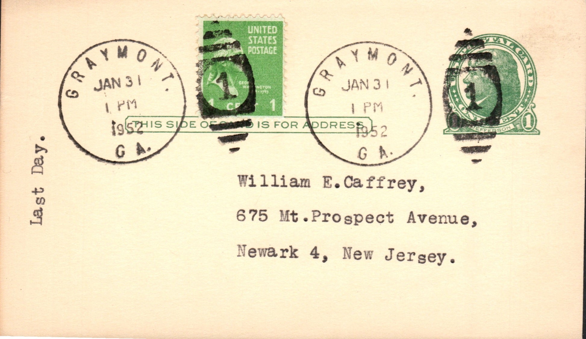 - Graymont (1897-1952) 1952 duplex on LD Postal card