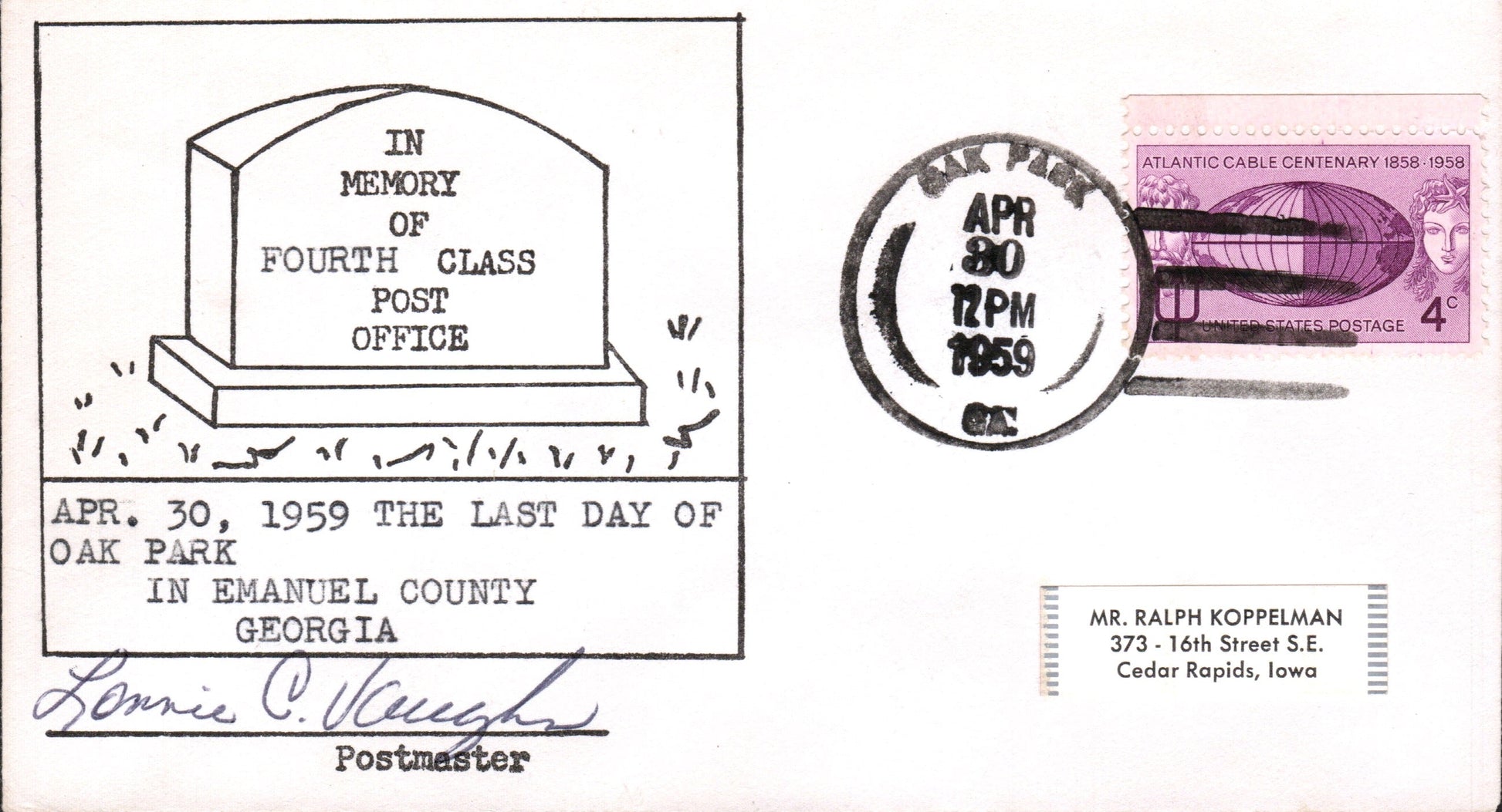 - Oak Park RB 1959 4-bar on cover, FD of Rural Branch