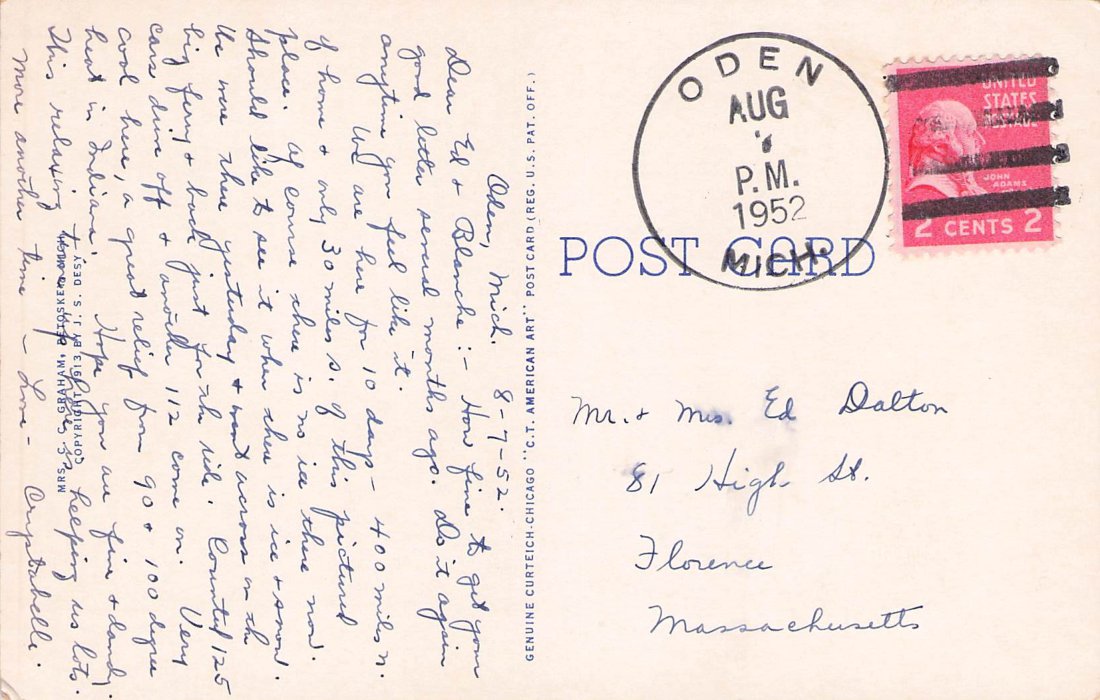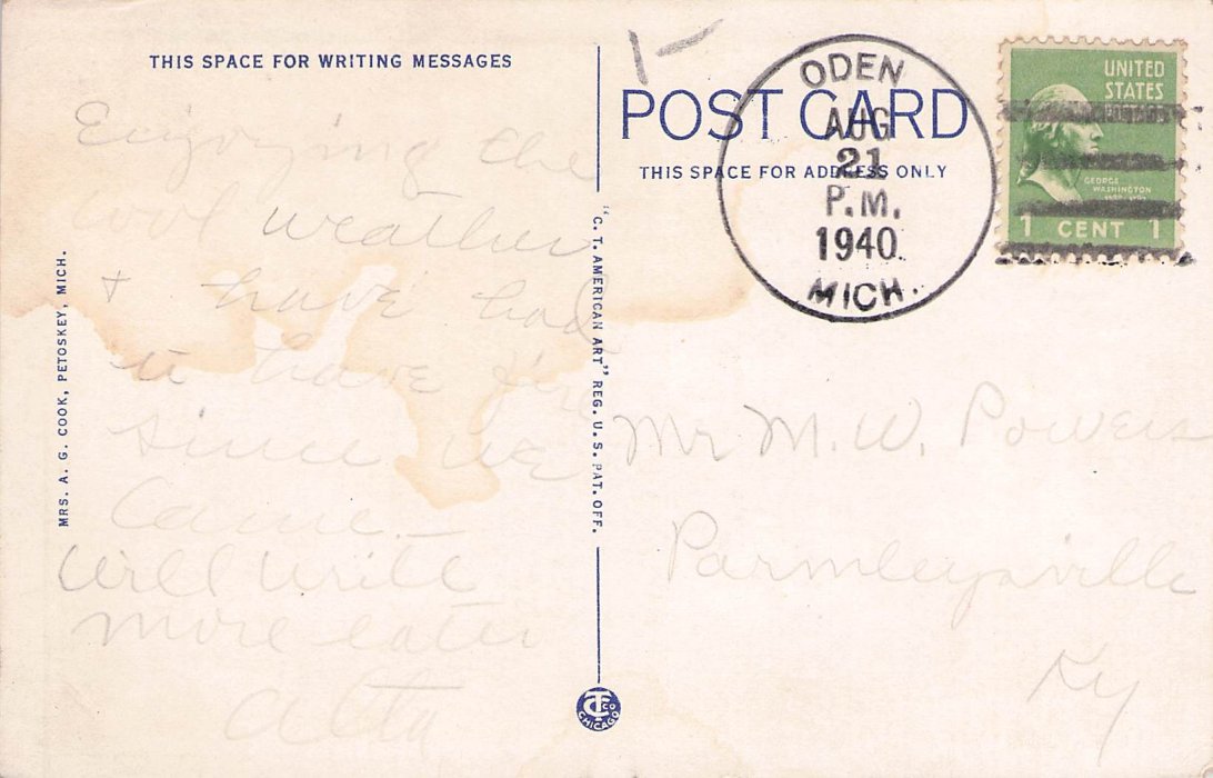 Highway Post Office postmark: 1913 Petoskey & Grand Rapids H.P.O. on post card