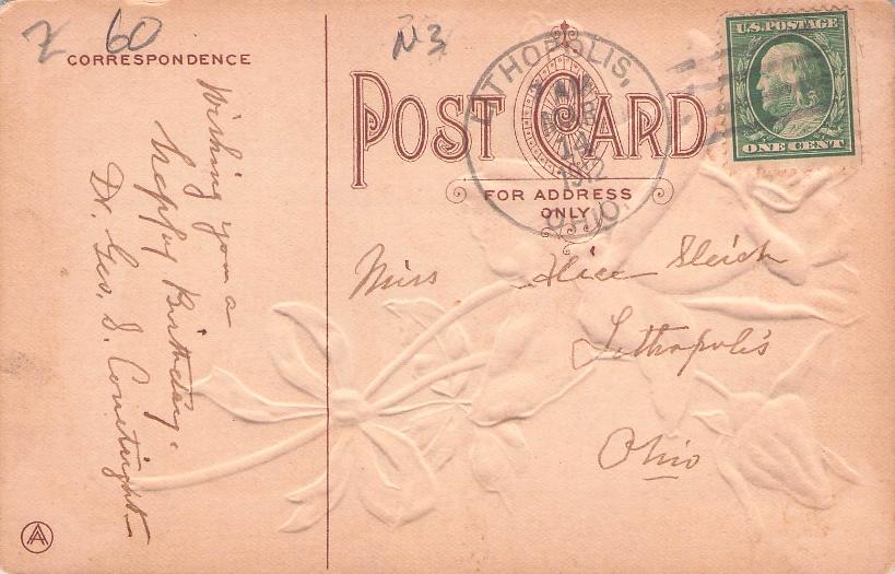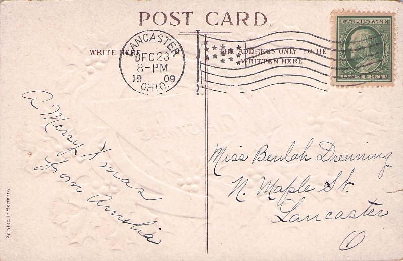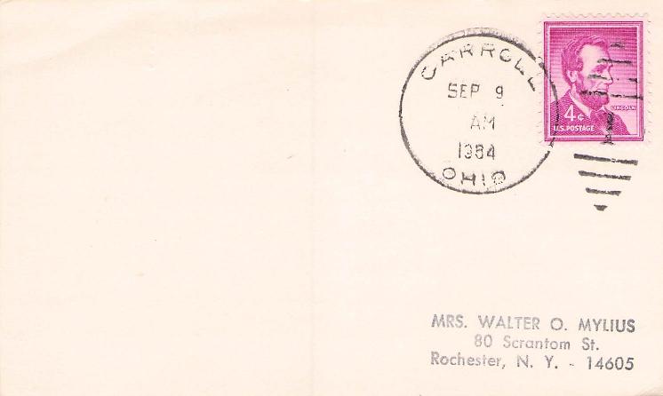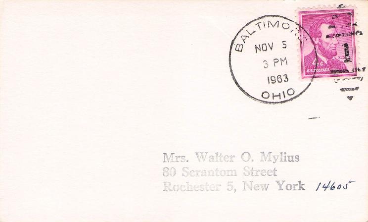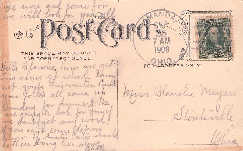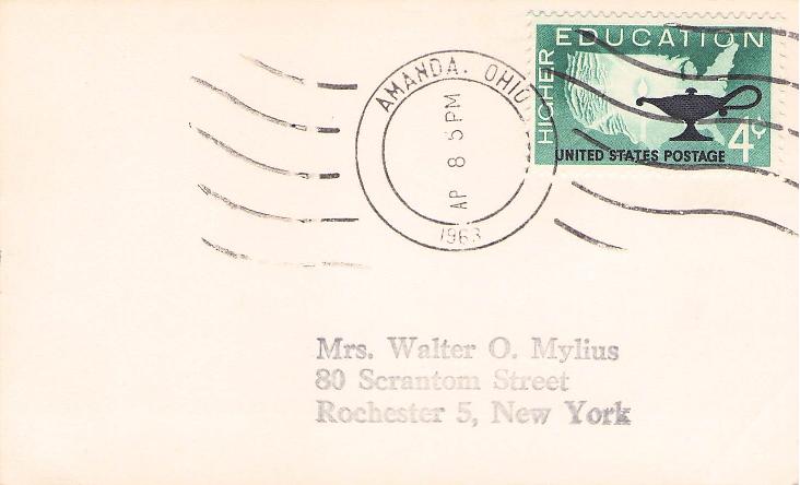 Amanda 1908 4-bar on post card; 1963 double circle on 3x5 card