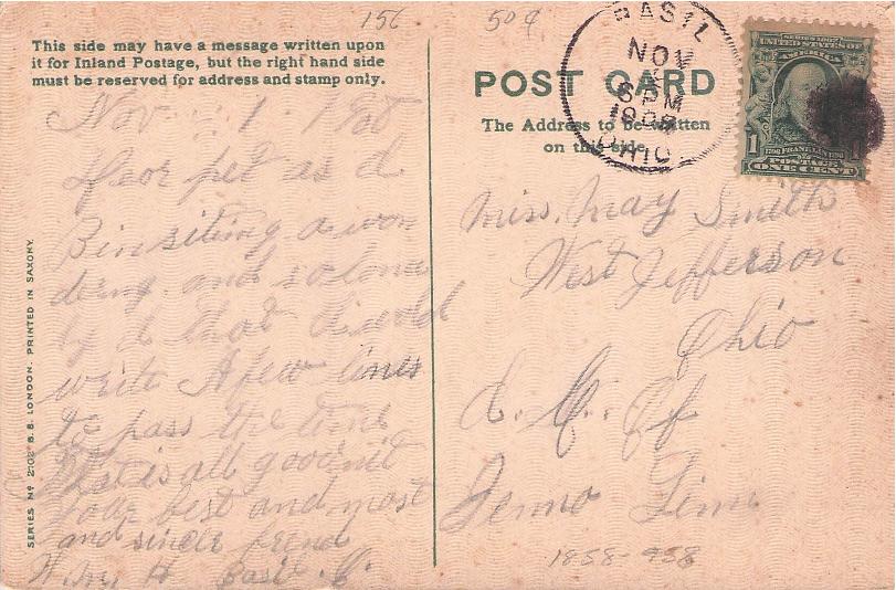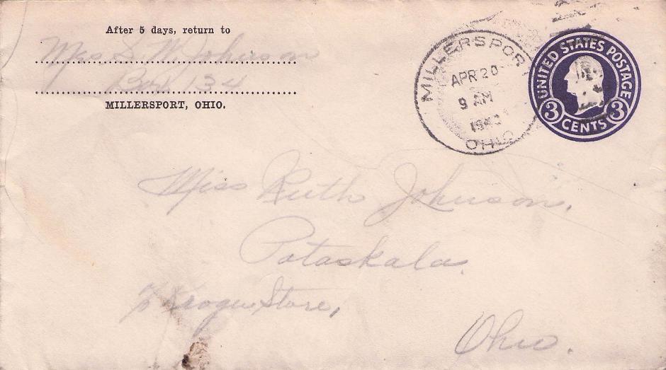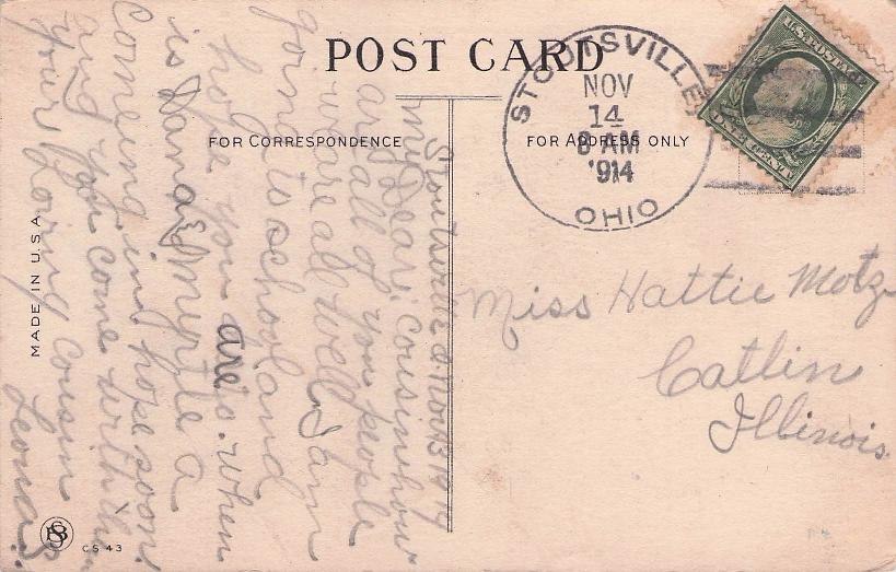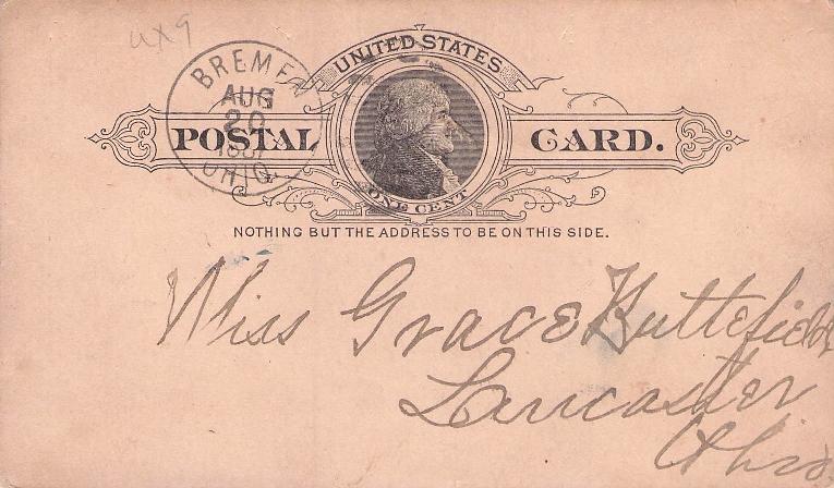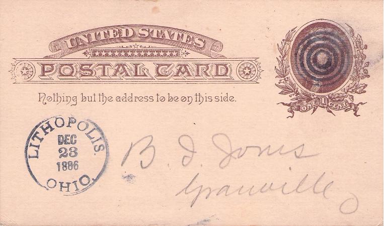 Lithopolis 1886 cds, target killer on Postal Card; 1912 4-bar on post card