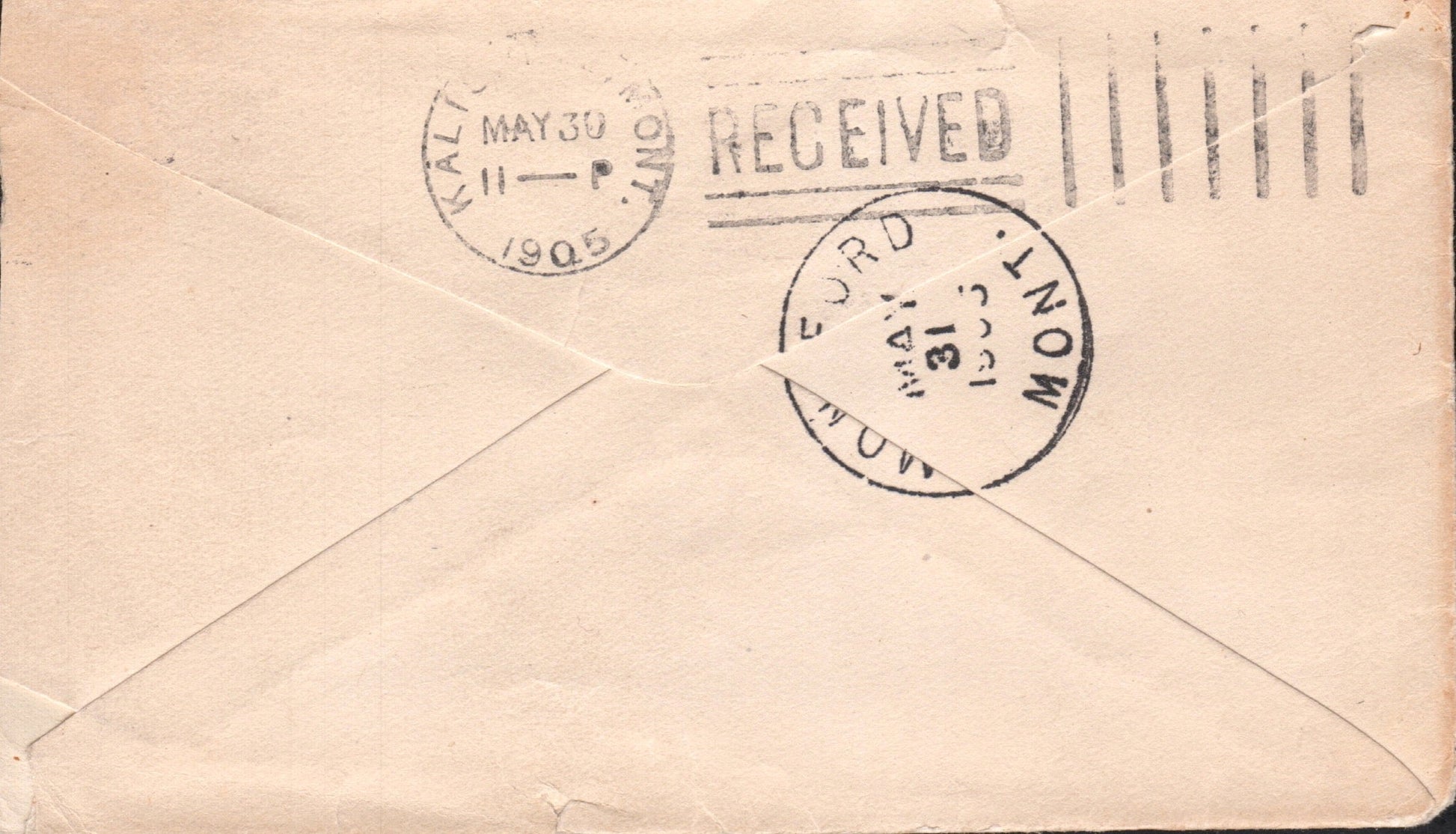 Montford (1900-1910) 1905 cds as receiving backstamp [also Kalispell Rec’d) on cover from St. Paul, Minn. Includes original letter