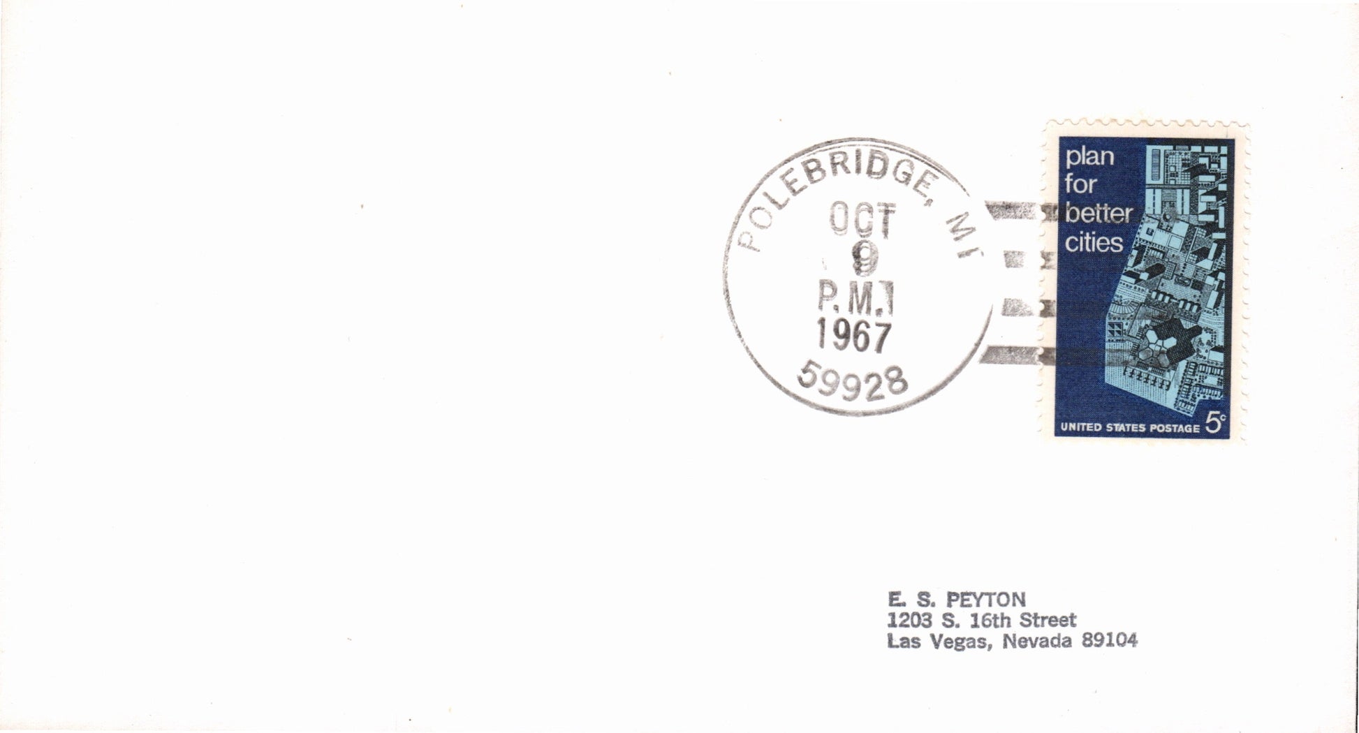 Polebridge (1920-75) 1964 4-bar on 3x5 card; 1967 4-bar on cover