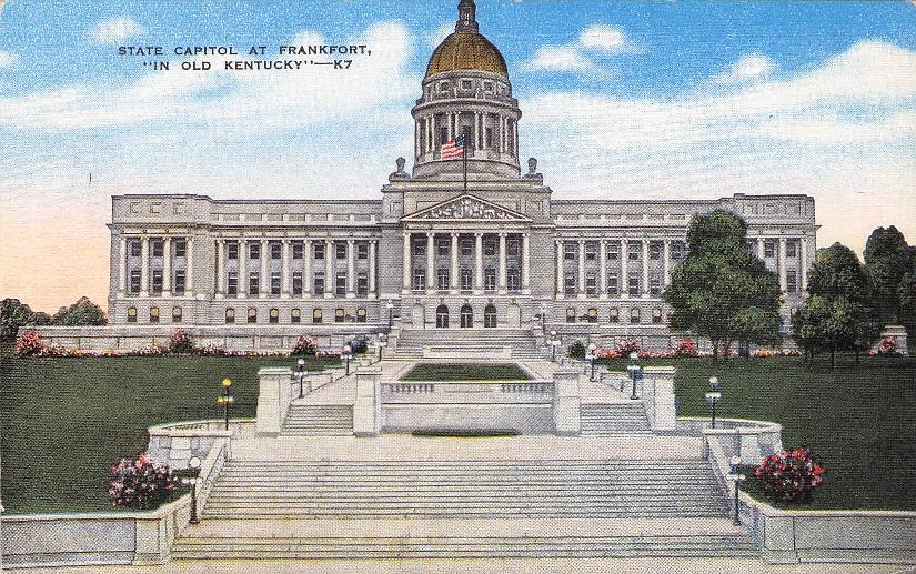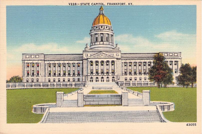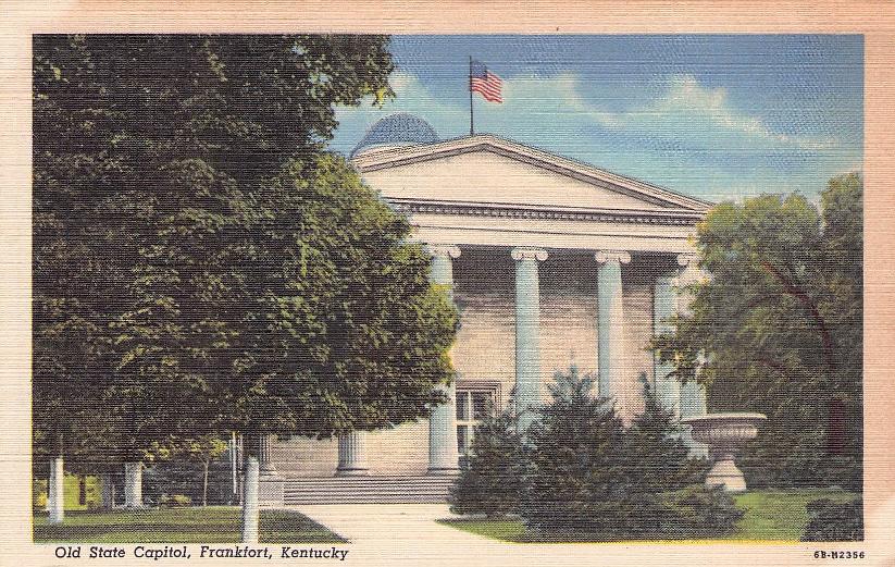 Post cards: Wilderness Trail Antique Shop [B&W, 1959]; “Old Taylor Spring House” [chrome]; 3 Daniel Boone grave (one linen, 1949); 5 State Capitol (one aerial, one interior); Old State Capitol [linen]; Governor’s Mansion [linen]; Taylor Museum [chrome]; Memorial Bridge [linen]