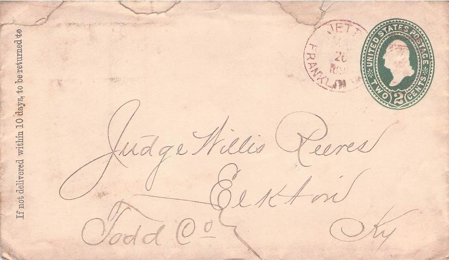 Jett (1883-1971) 18?? County-in-cancel on cover w/ tears at top