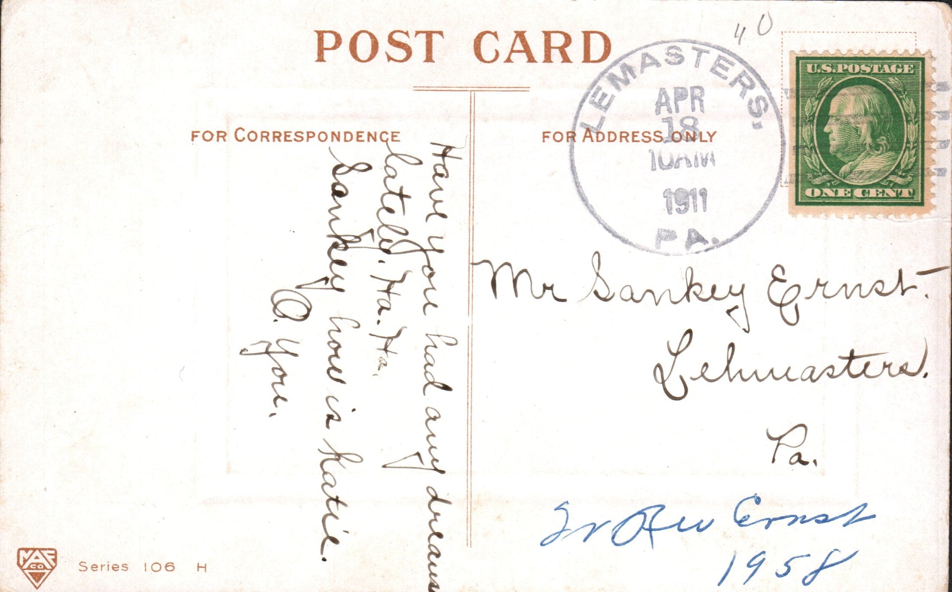 Lemasters 1908? Doane 3 on post card; 1911 4-bar on post card