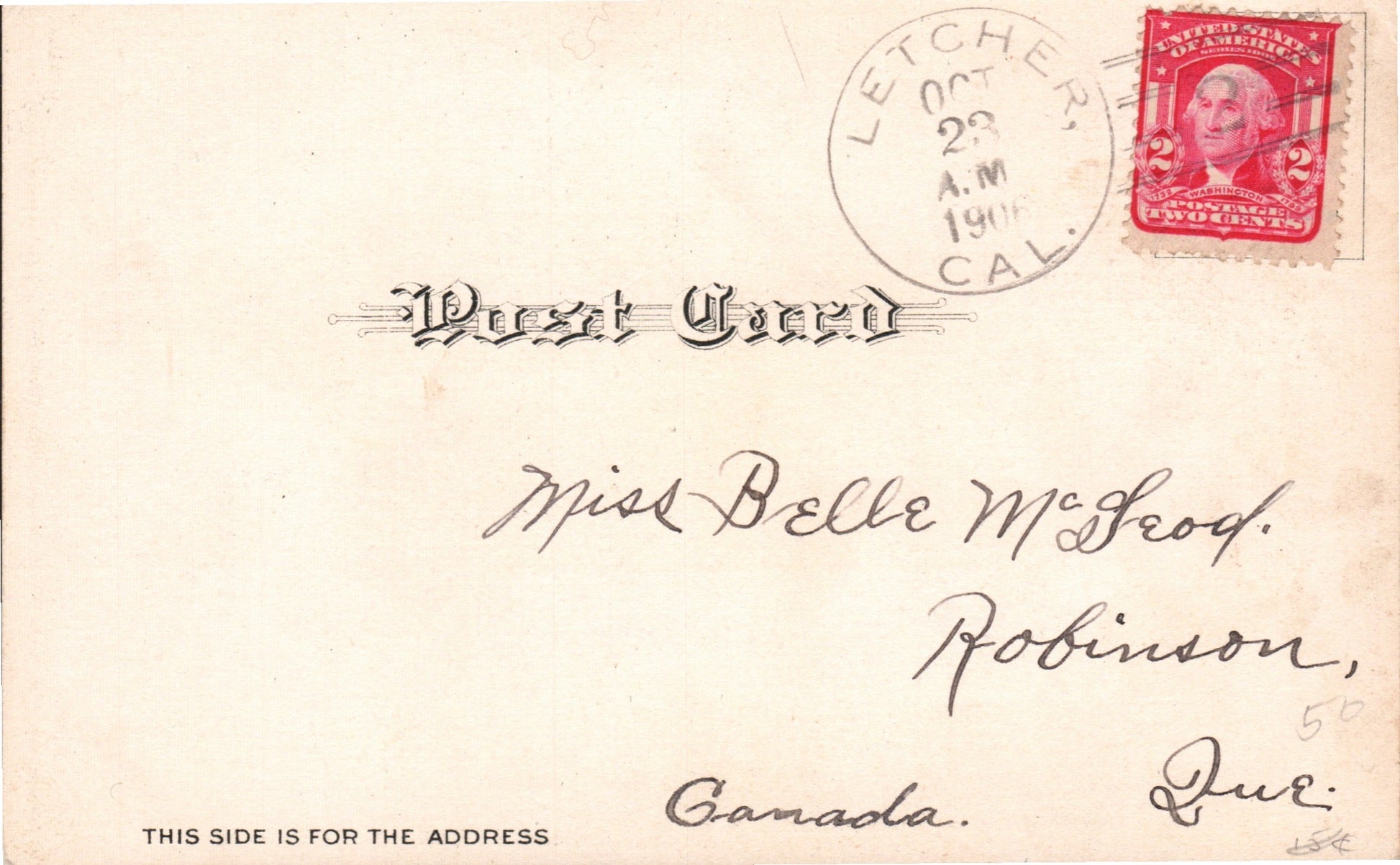 Letcher (1880-1915) 1906 Doane 2 on post card