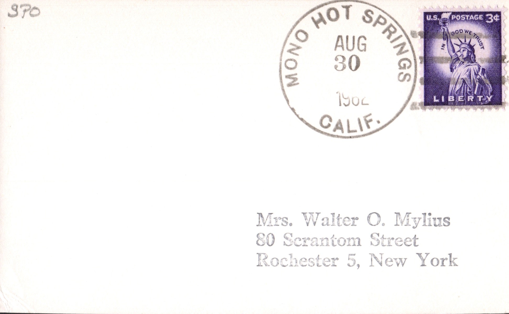 Mono Hot Springs (1946-1963) 1962 4-bar on 3x5 card