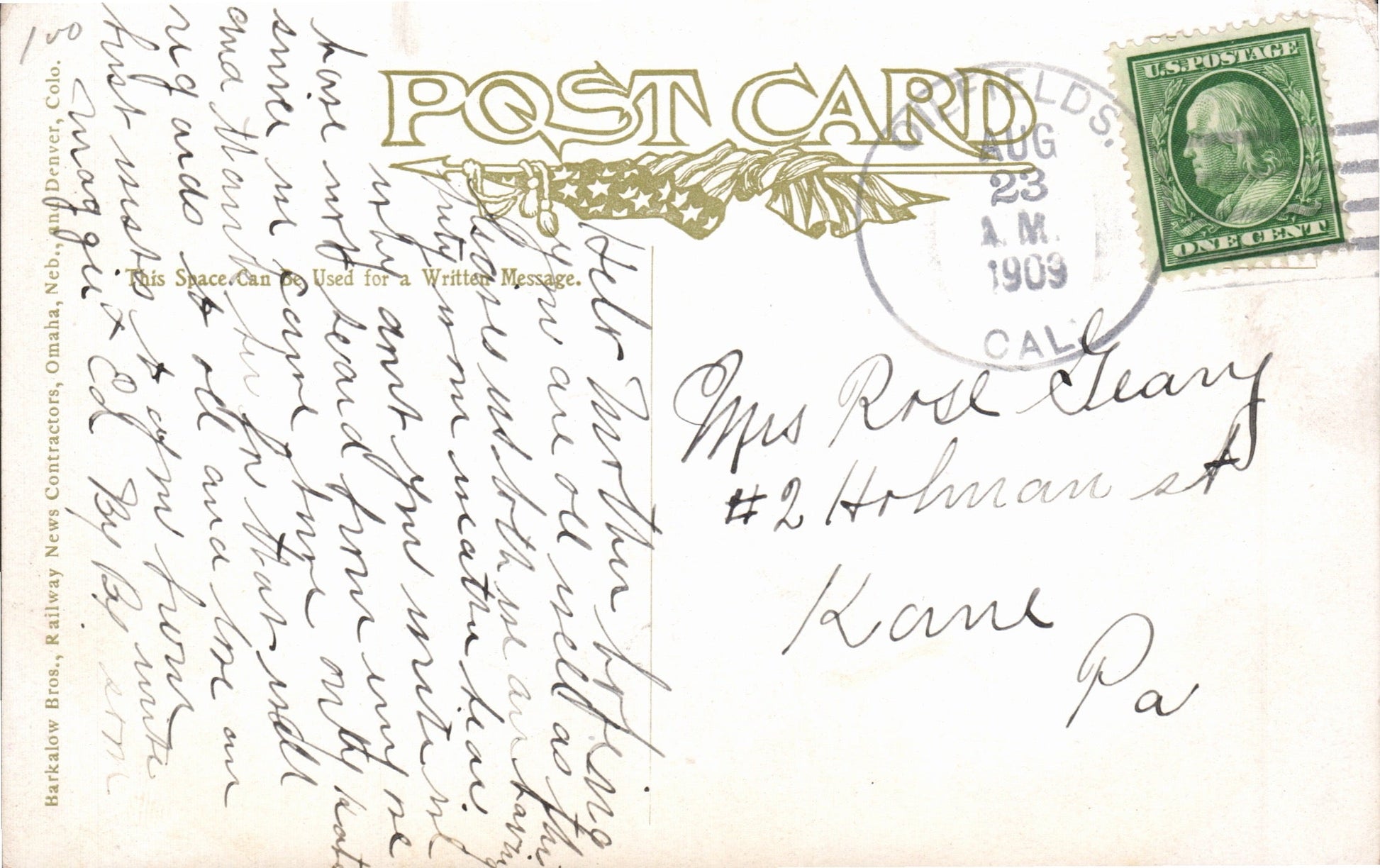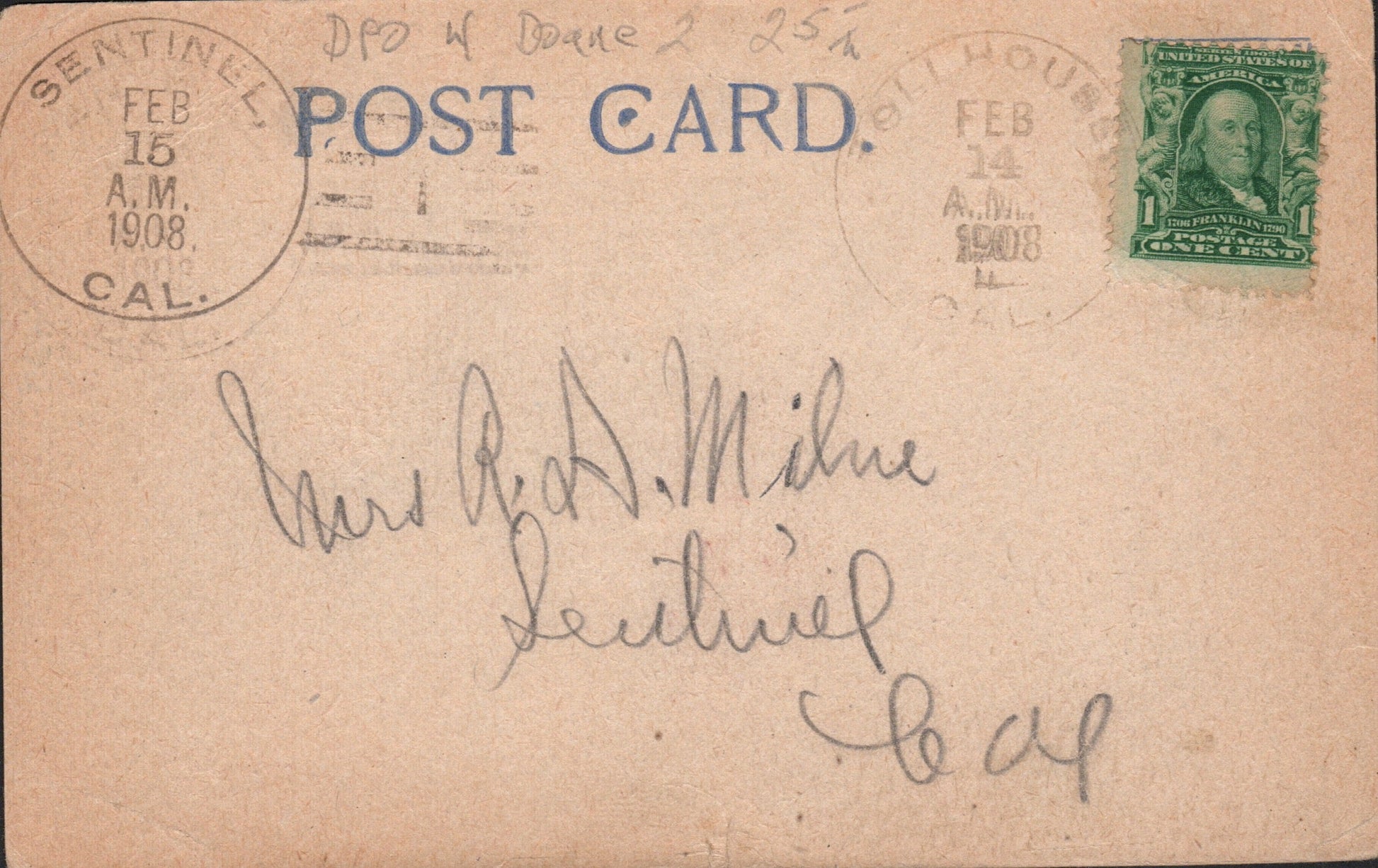 Sentinel (1880/1910) 1908 Doane? as rec’d mark on post card
