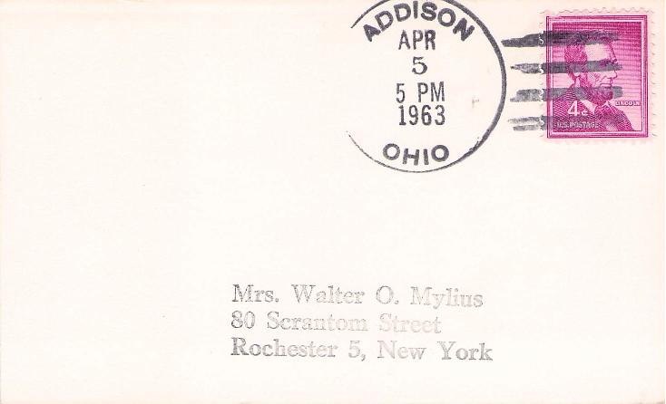Addison 1963 4-bar on 3x5 card, PM autograph
