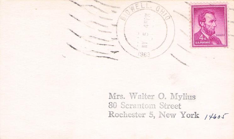 Bidwell 1963 4-bar on 3x5 card, PM autograph