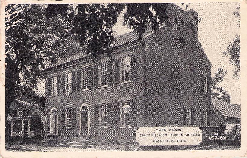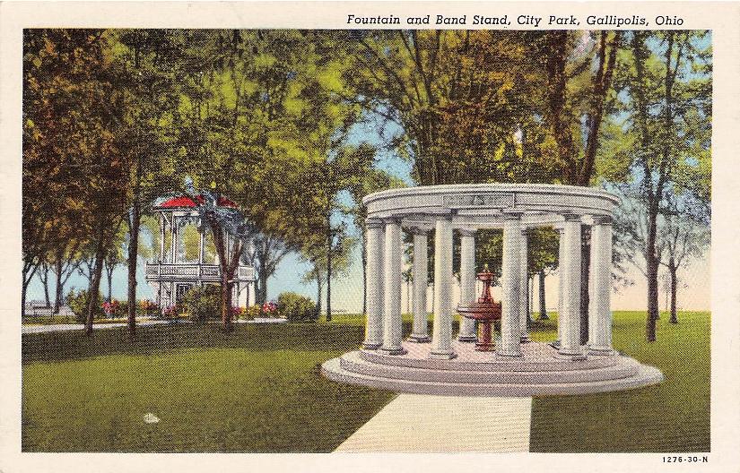 Post cards: “Fountain and Band Stand” (1945); “Gilkey’s Queen Bee Hotel [chrome]; “Bird’s-Eye view of Ohio River and Gallipolis” [linen]; “Silver Bridge” [2 chrome views]; “Built in 1819, Public Museum” (B&W)