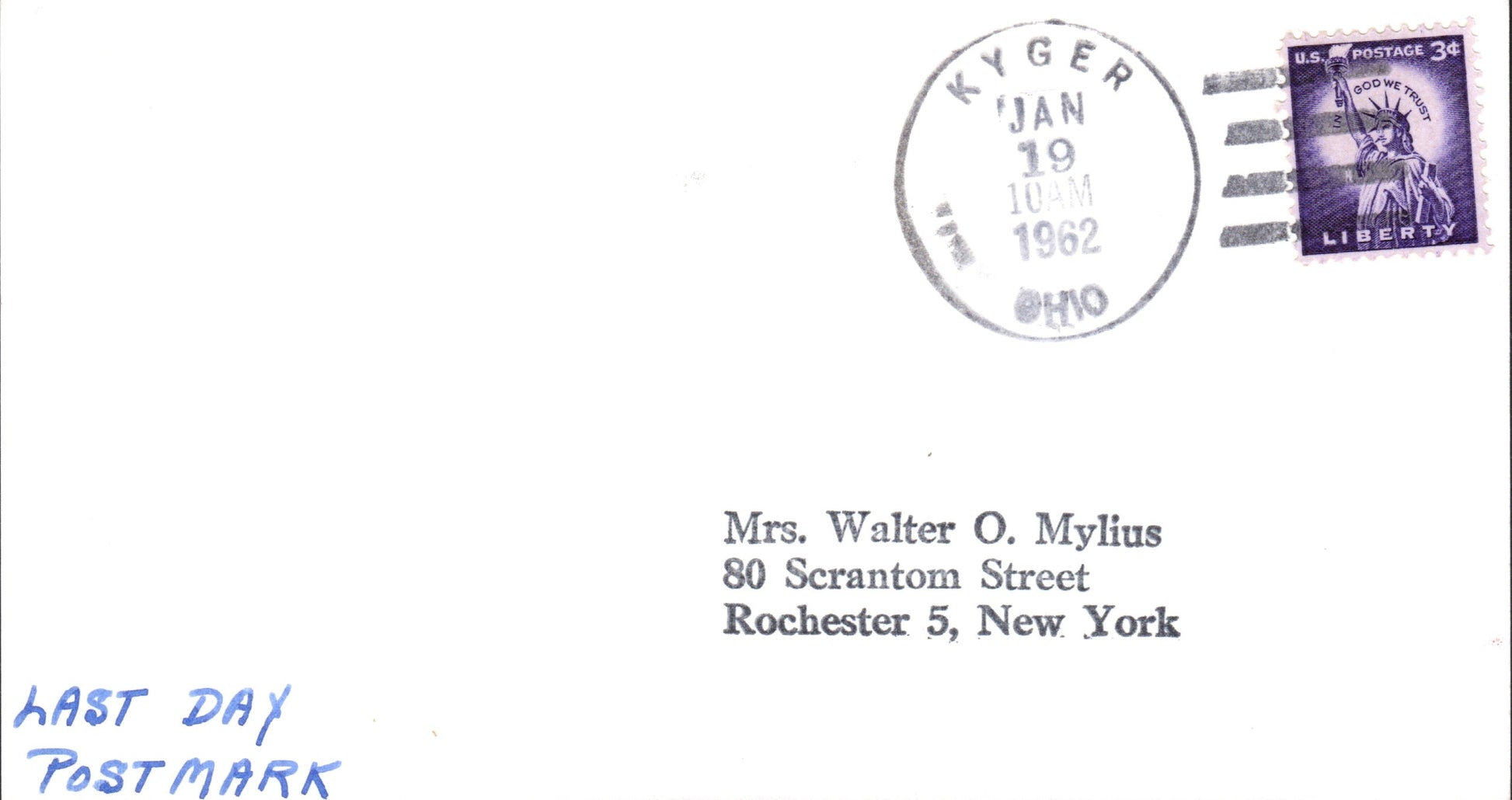 Kyger (1837-1962) 1962 4-bar on LD cover