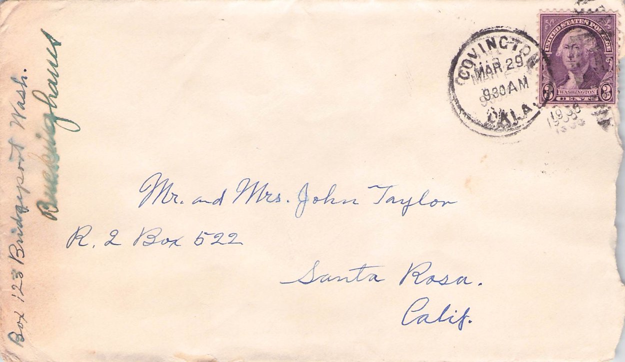 Covington 1936 date-out duplex on cover; 1938 machine cancel on cover