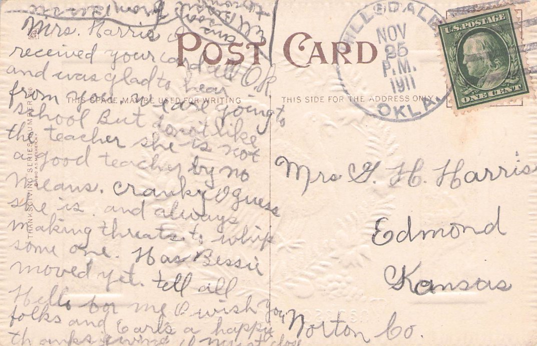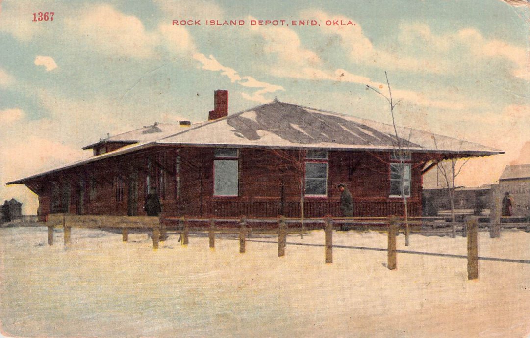 Lahoma 1902 cds & target killer on cover with original contents, Territorial; 1911 4-bar on post card , nice view of Enid RR station