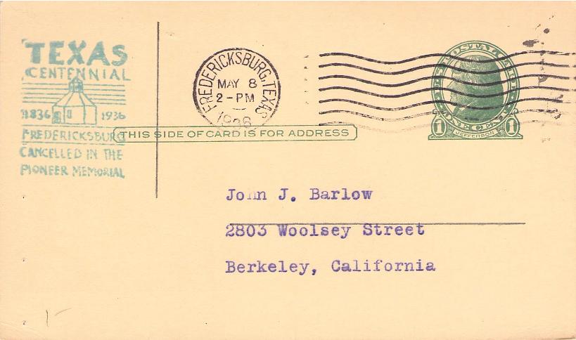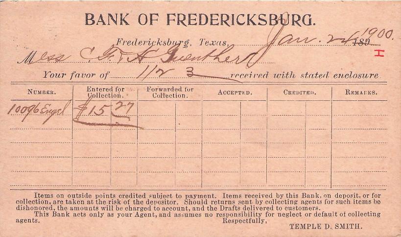 Fredericksburg 1900 cds on Postal Card, Bank of Fredericksburg; 1948 machine cancel on Postal Card.