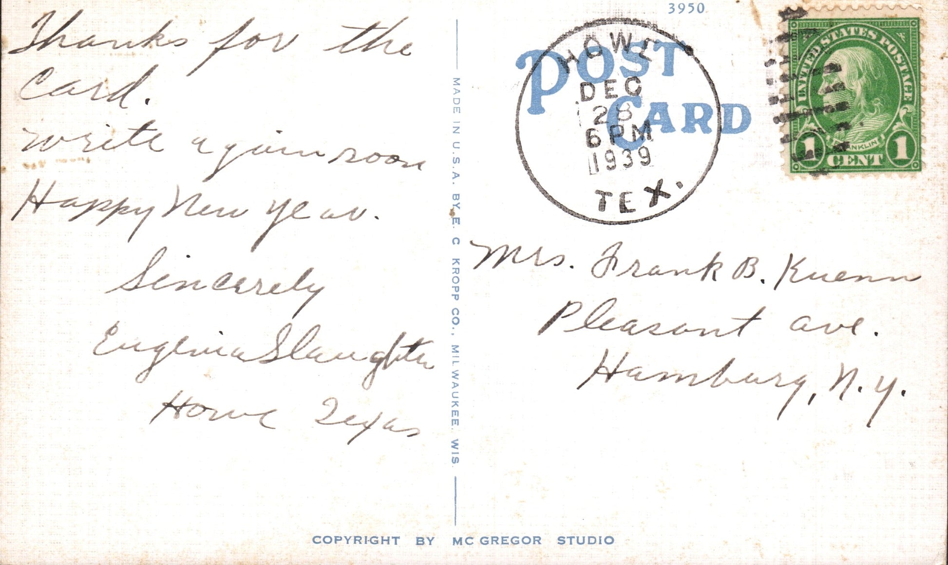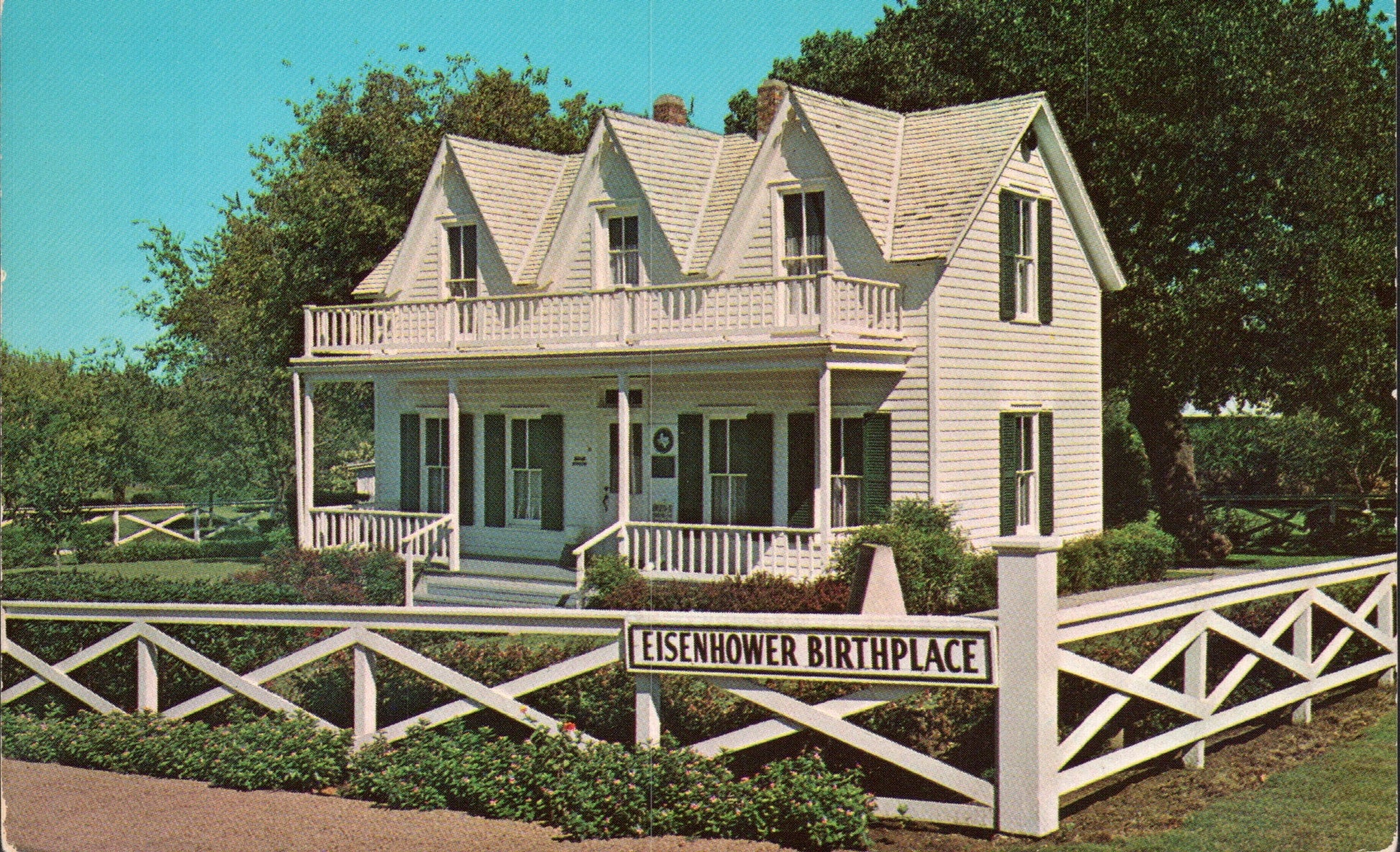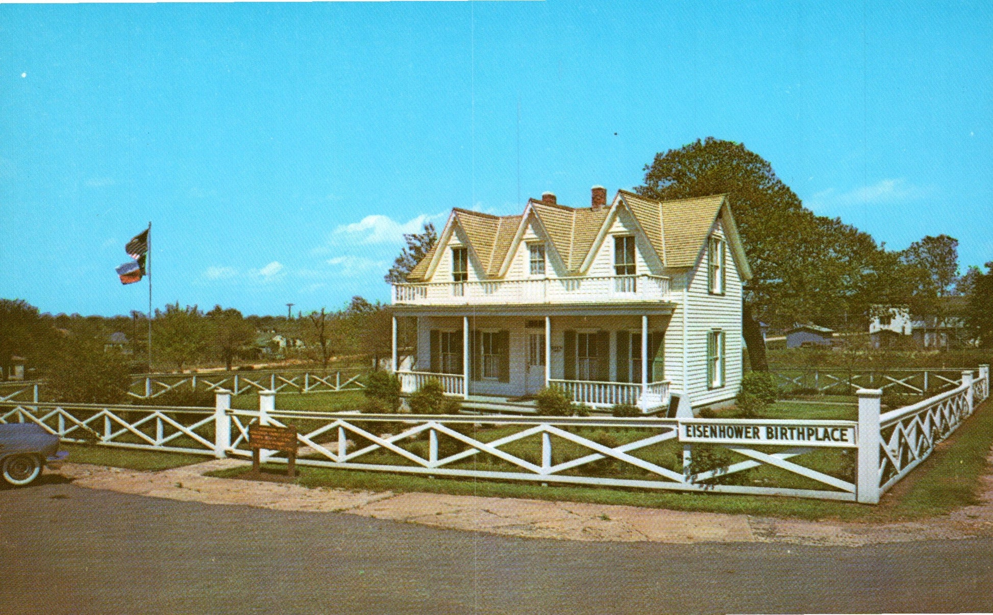 - Denison 1898 duplex on cover. Post card: Eisenhower Birthplace” [2 chrome views]