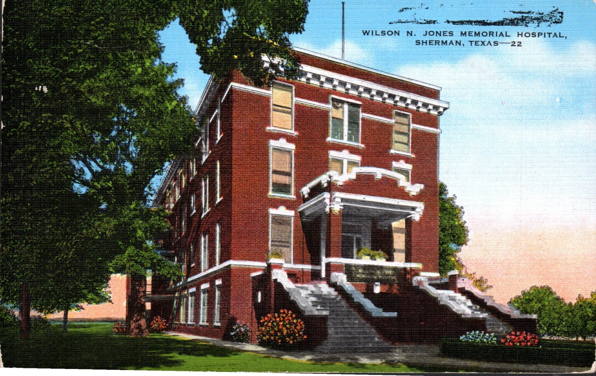 - Post card: “Wilson N. Jones Memorial Hospital” [linen]; “Cammie Stearns Hall North Texas College” [c.1930]