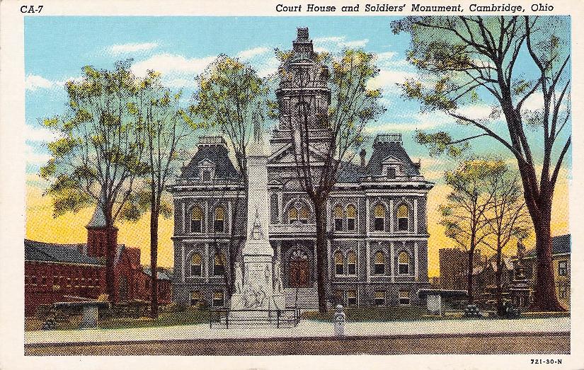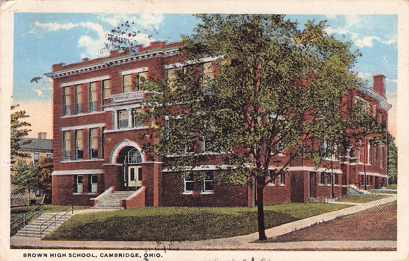- Post cards: Court House and Soldiers’ Monument [2 diff. views, both linen]; Brown High School (1922); “The Old Bridge on National Pike” [chrome reproduction of early view; Armstrong Mill covered bridge in original location