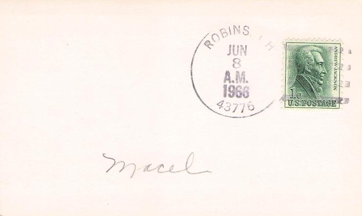 - Gibson (1882-1957) 1957 4-bar on LD Postal Card, postmaster autograph