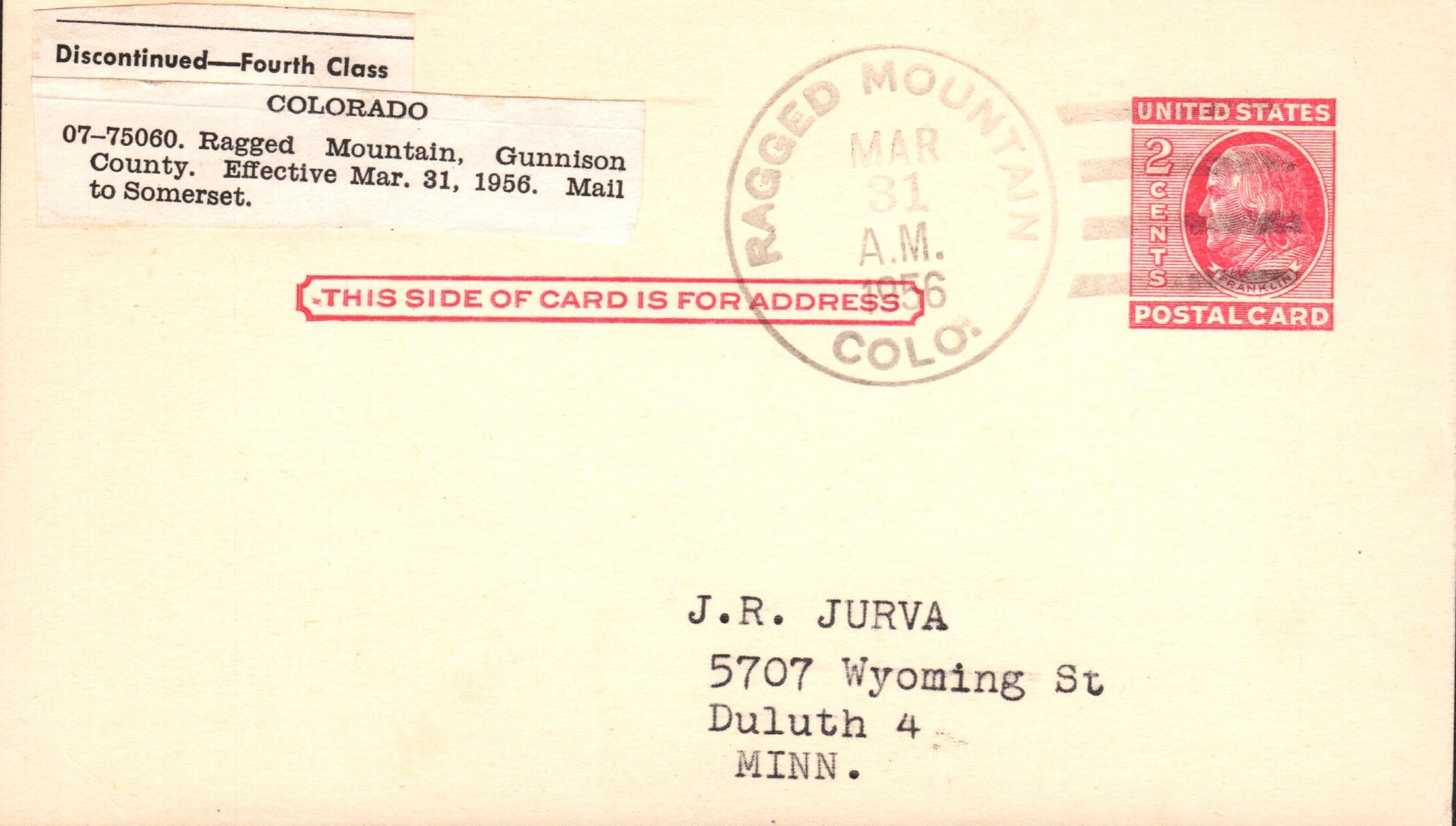 Ragged Mountain (1919-1956) 1956 4-bar on LD Postal Card