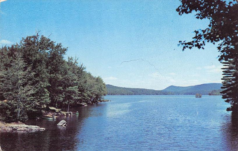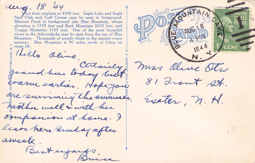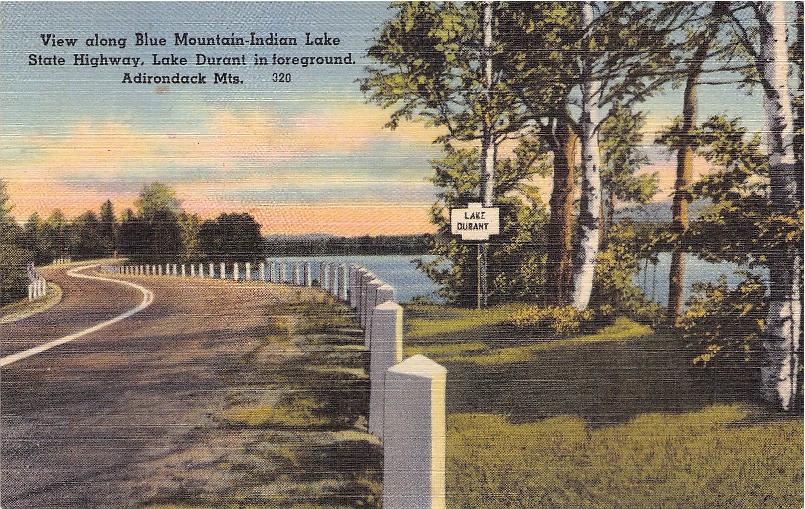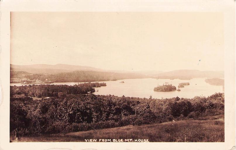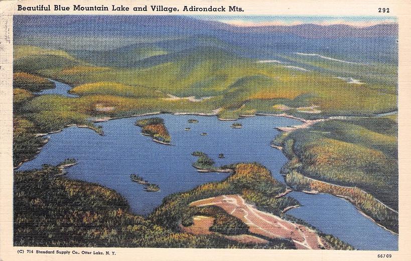 - Blue Mountain Lake 11944 duplex on post card, aerial view of the lake.