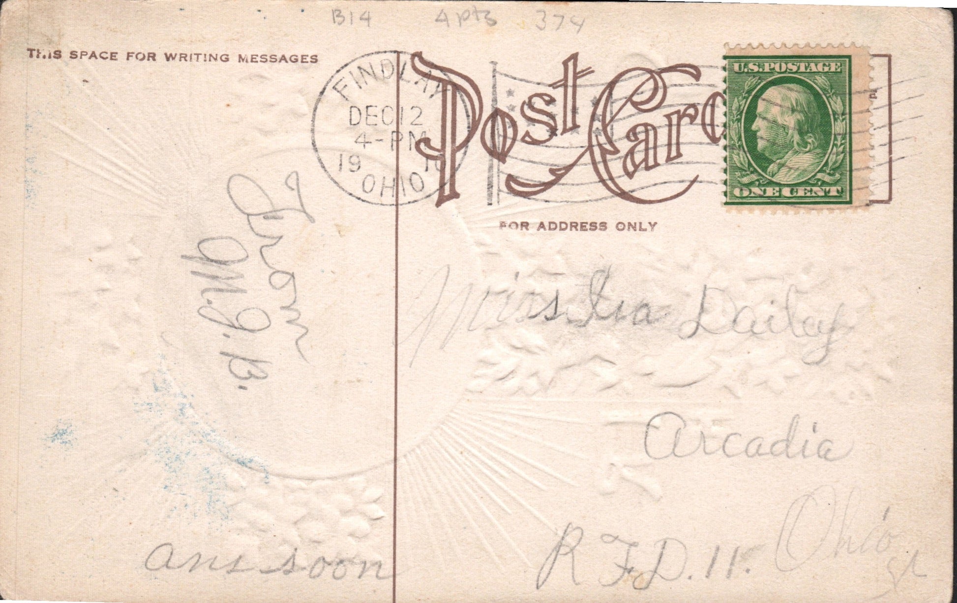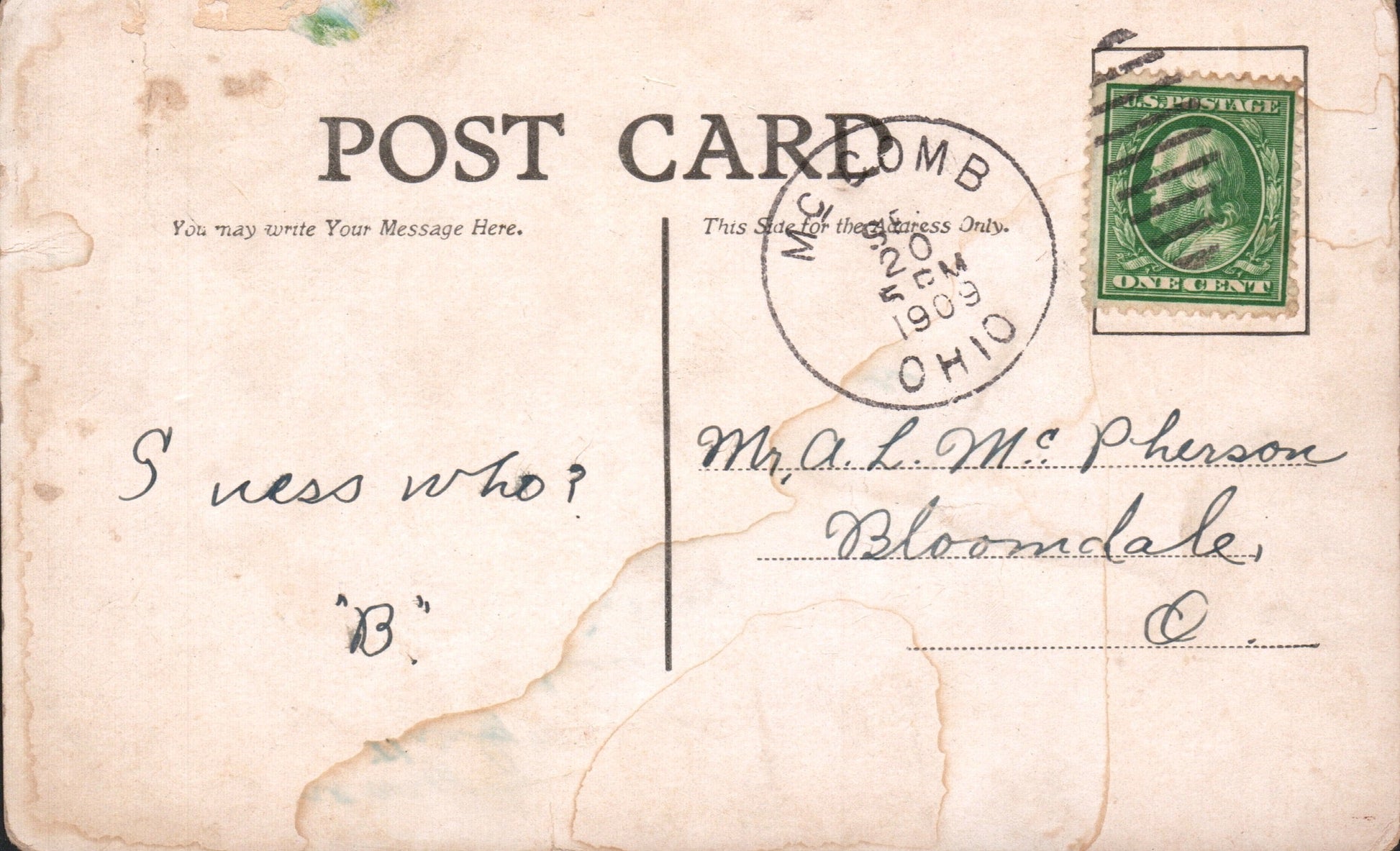 McComb 1909 duplex on post card;1925