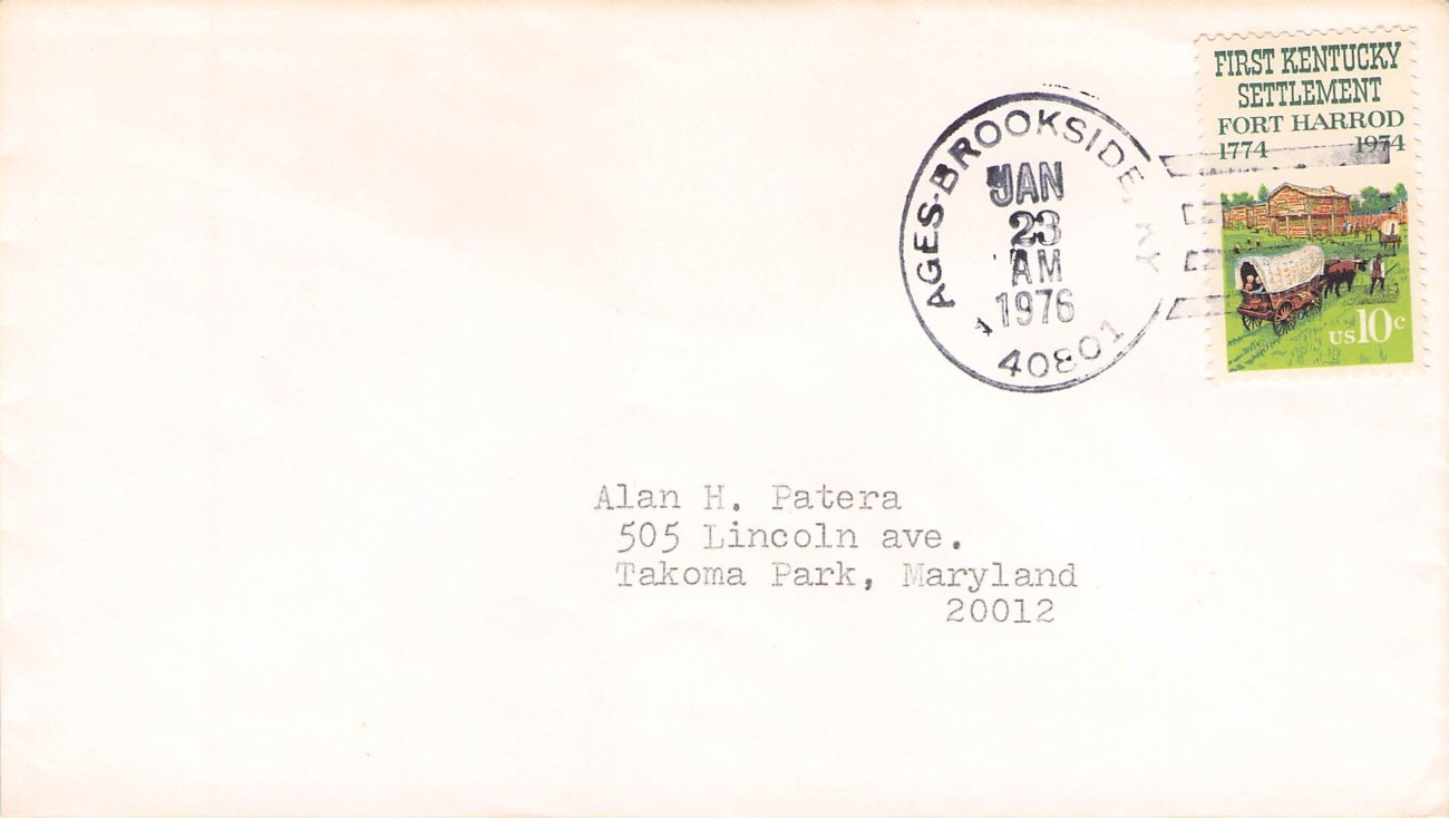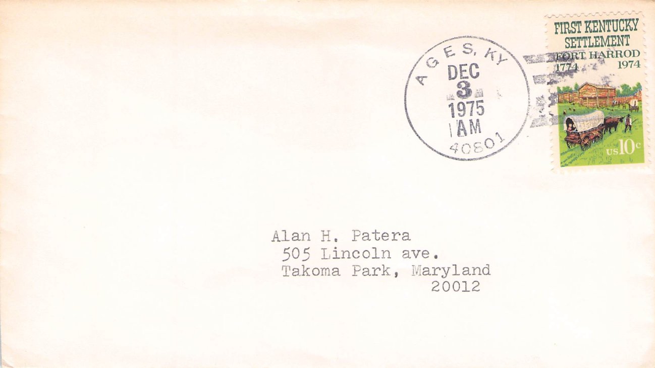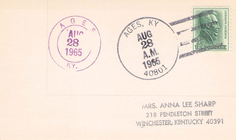 Ages (1892-1975) 1965 4-bar and round dater on 3x5 card; 1975 4-bar on cover